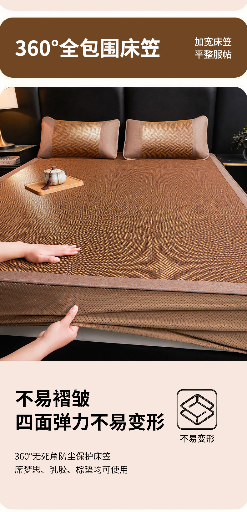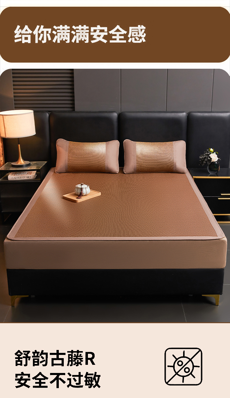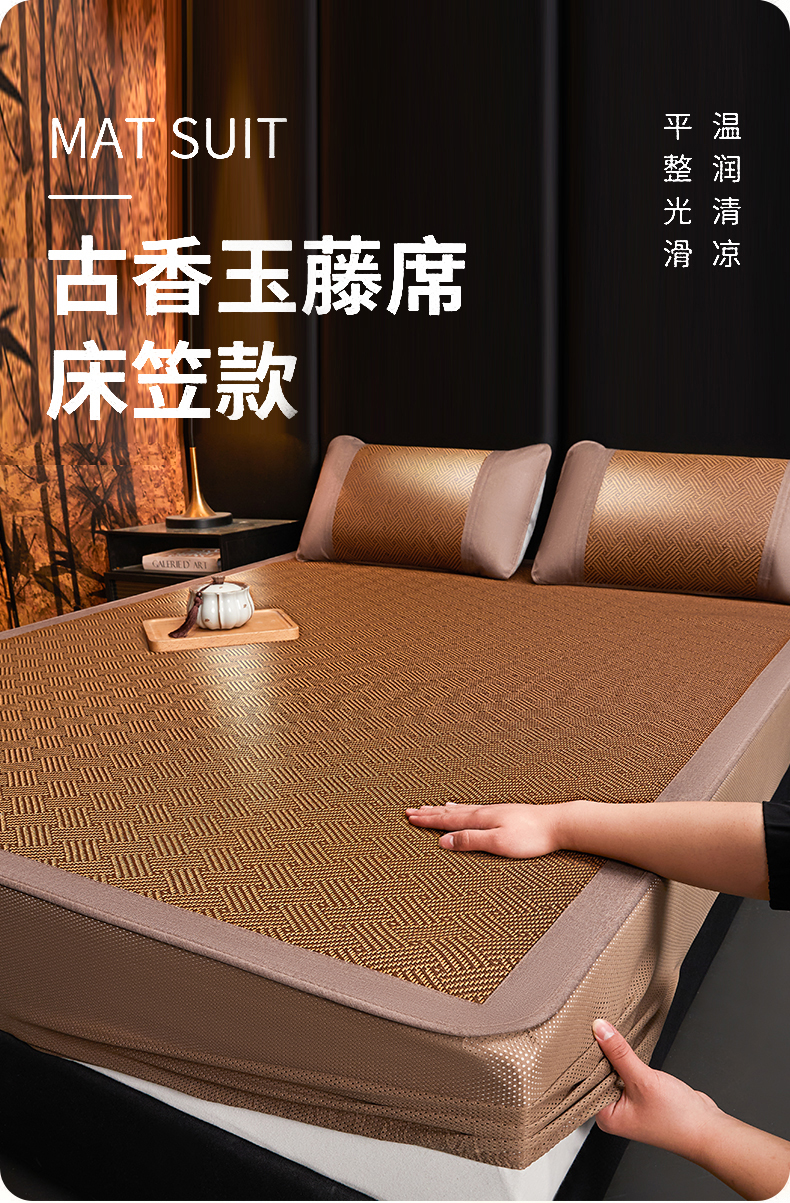 当前位置: 91家纺网 > 商品网购 > 床上用品 > 凉席 > 藤席 > 绒艺席业 2026新款加密古香玉床笠款藤席凉席席子 藤韵