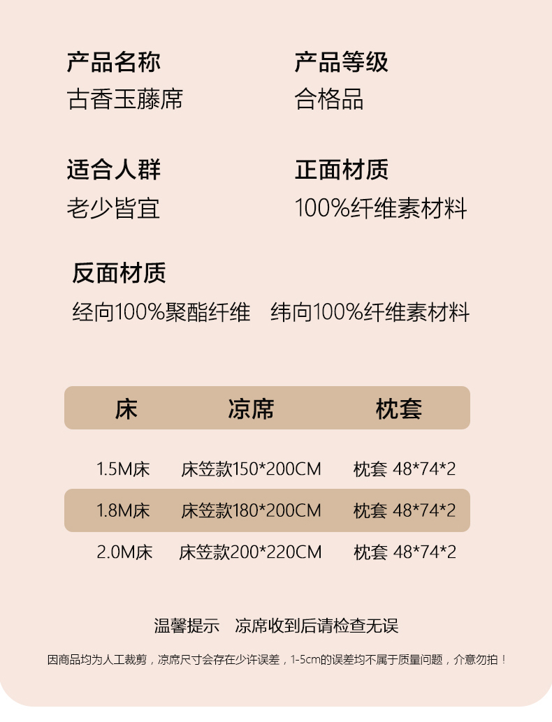 180x200cm单凉席 | ¥66.00 |