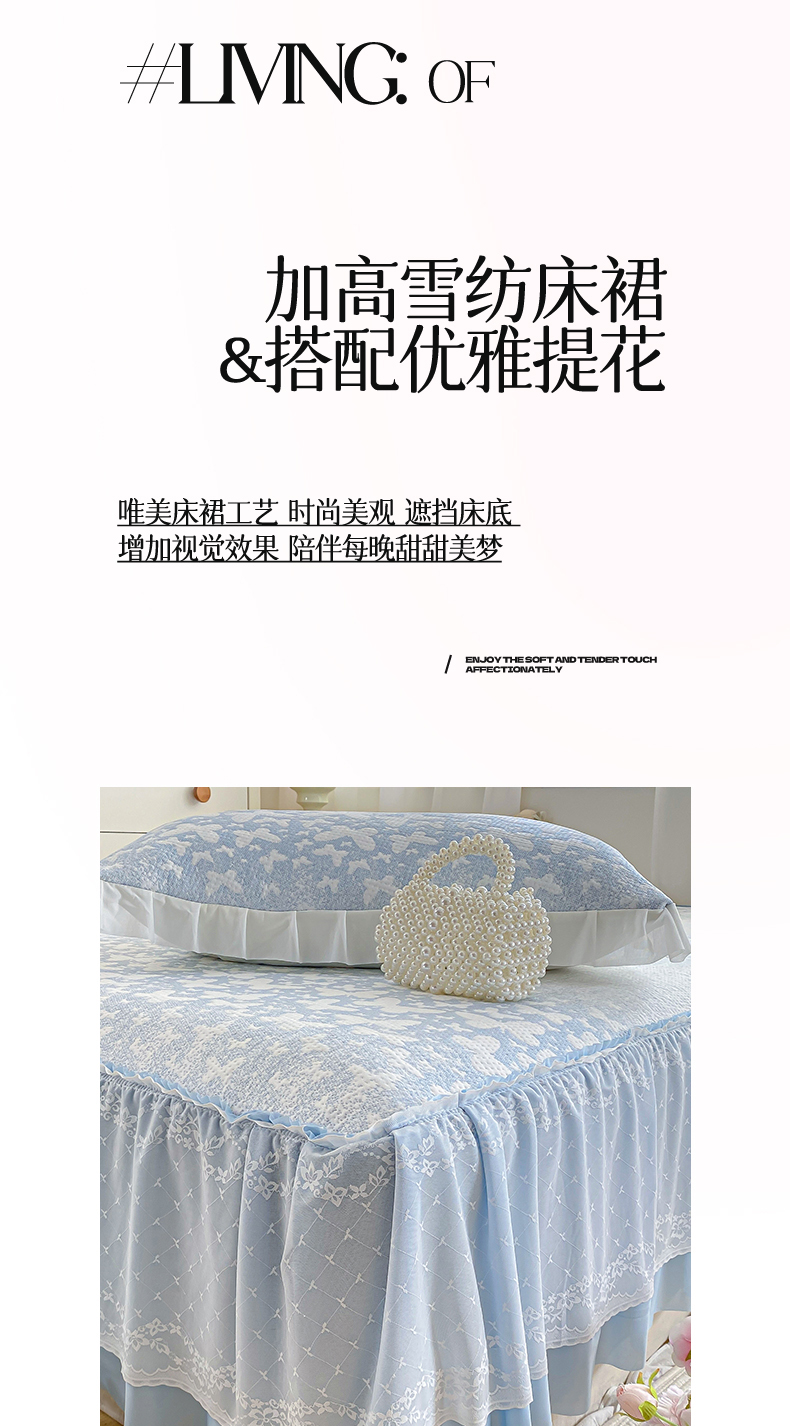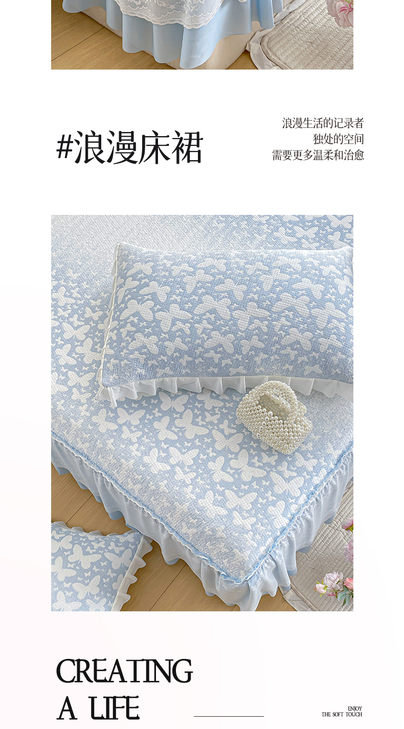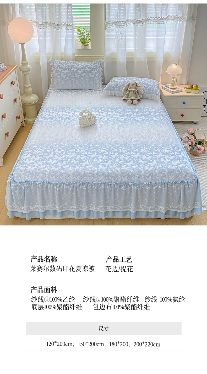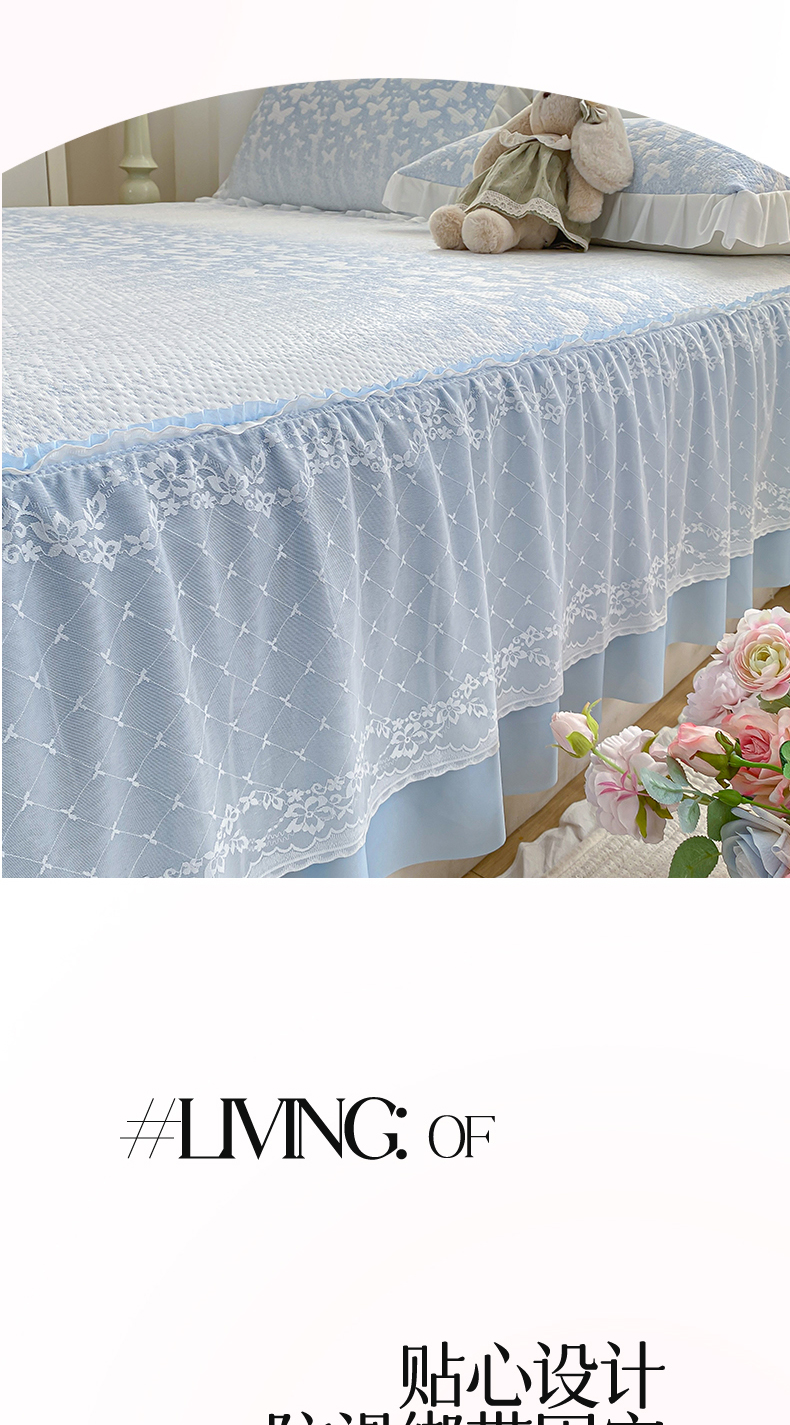 商品名称:伊人坊 2026新款A类550克凉感提花值过0.21冰豆豆家用凉席子三件套夏季-床裙款 花蝴蝶-蓝