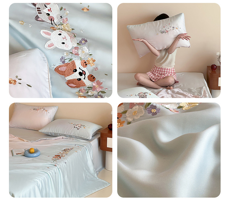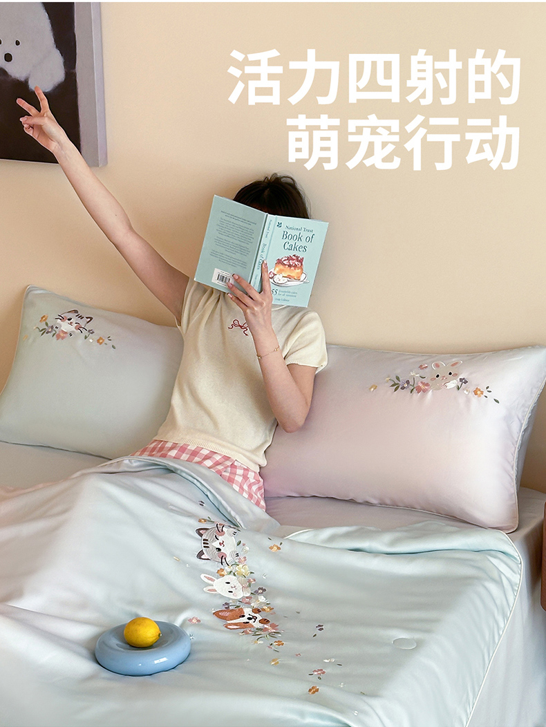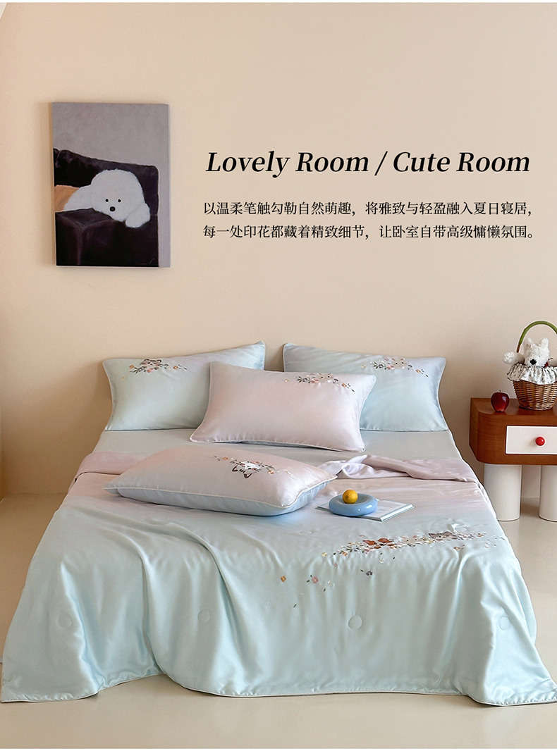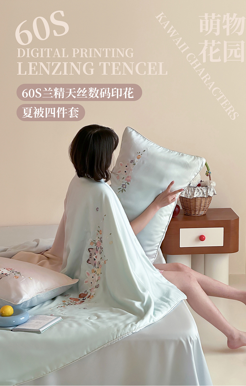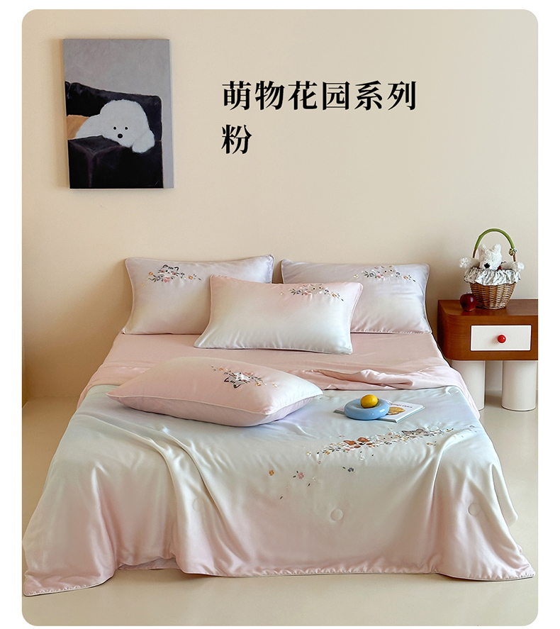• 91家纺网 家纺一手货源 找家纺 (总)爱缦 2026新款60s兰精天丝数码印花绣花夏被空调被夏凉被四件套,萌物花园-粉,萌物花园-蓝
