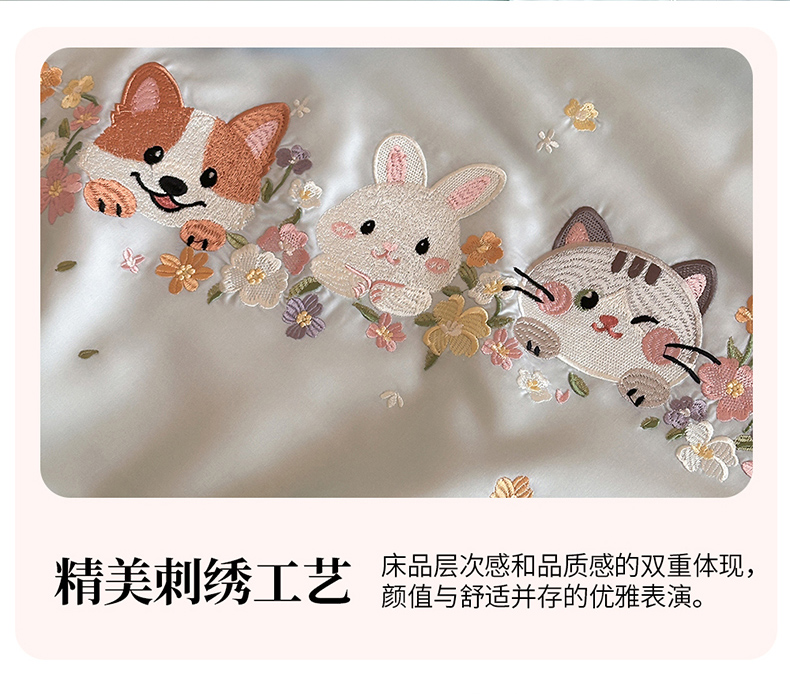 • 91家纺网 家纺一手货源 找家纺 (总)爱缦 2026新款60s兰精天丝数码印花绣花四件套,萌物花园-粉,萌物花园-蓝