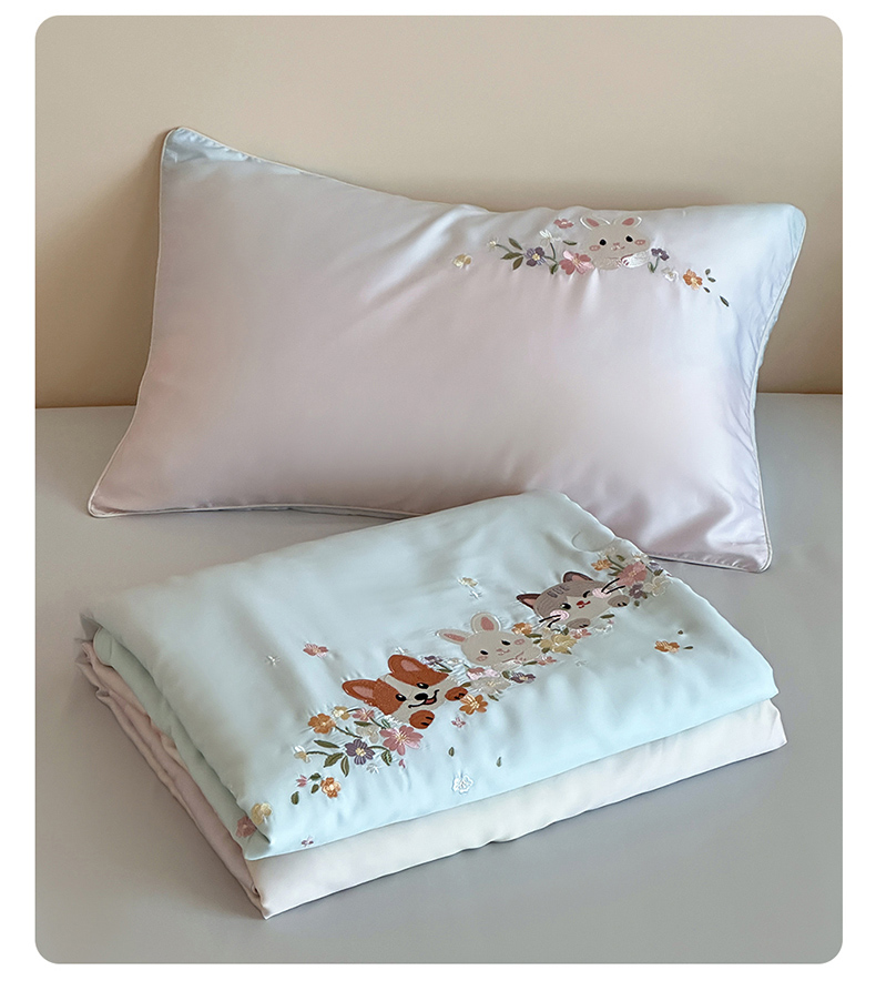 • 91家纺网 家纺一手货源 找家纺 (总)爱缦 2026新款60s兰精天丝数码印花绣花夏被空调被夏凉被,萌物花园-粉,萌物花园-蓝
