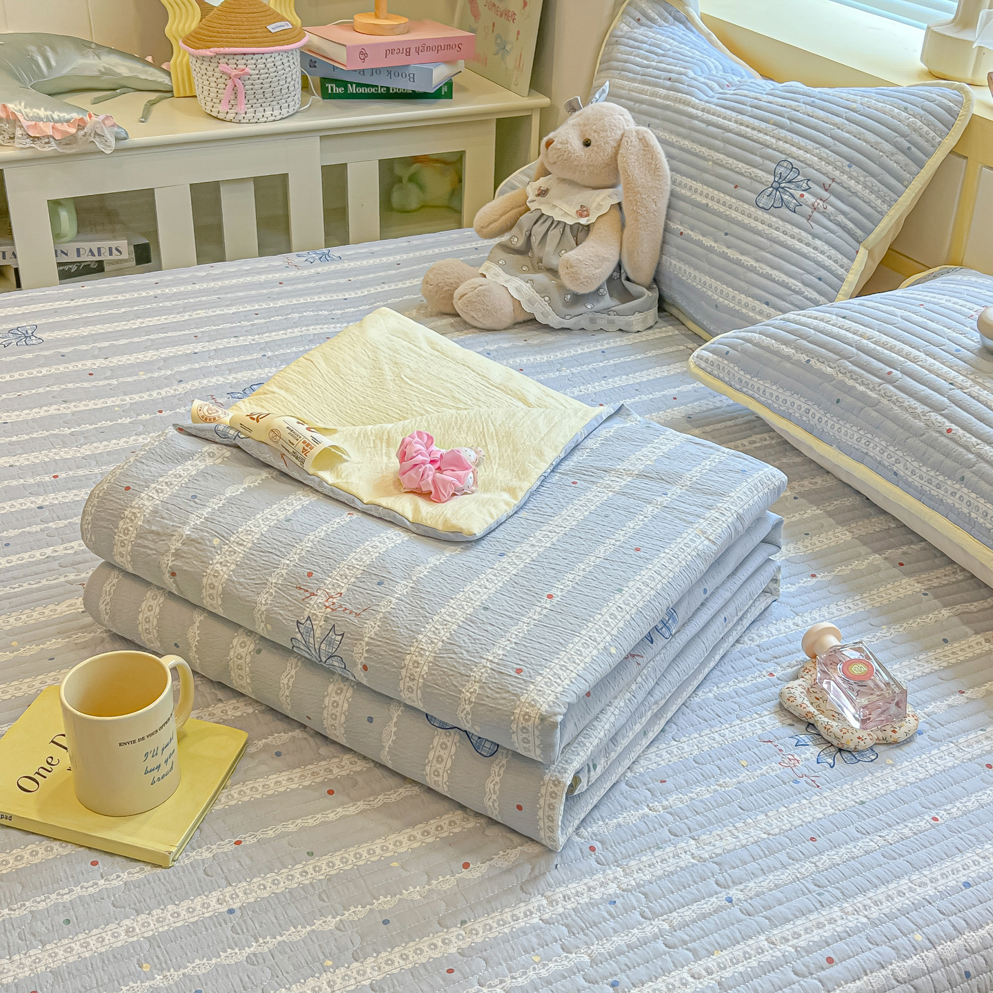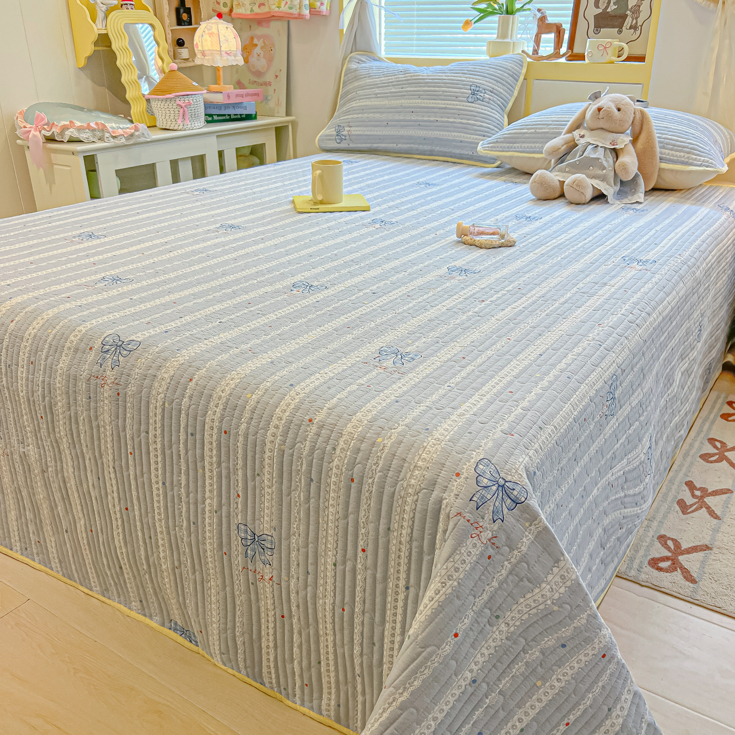 当前位置: 91家纺网 > 商品网购 > 被子 > 夏被 > 乐逸家纺 2026新款A类云感双层纱夏被床盖四件套 夏日条纹