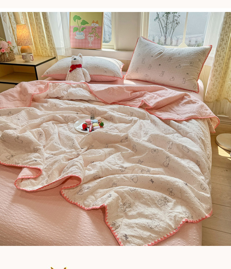 慕澄家纺 2024新款时尚印花泡泡棉花边夏被夏凉被空调被 夏被-甜小兔,夏被-甜小兔