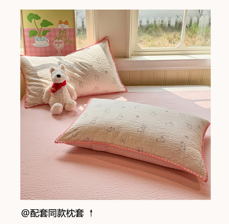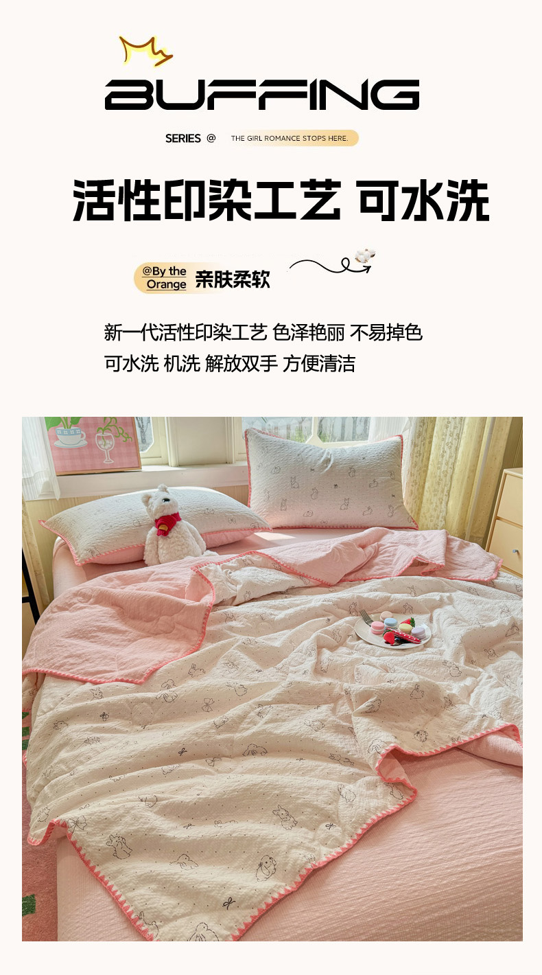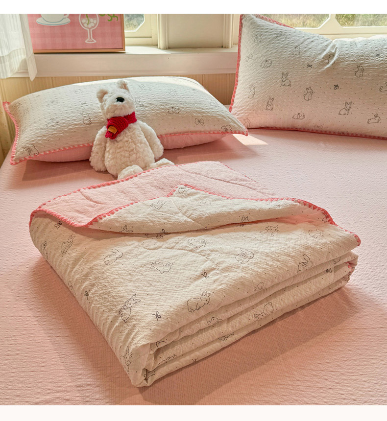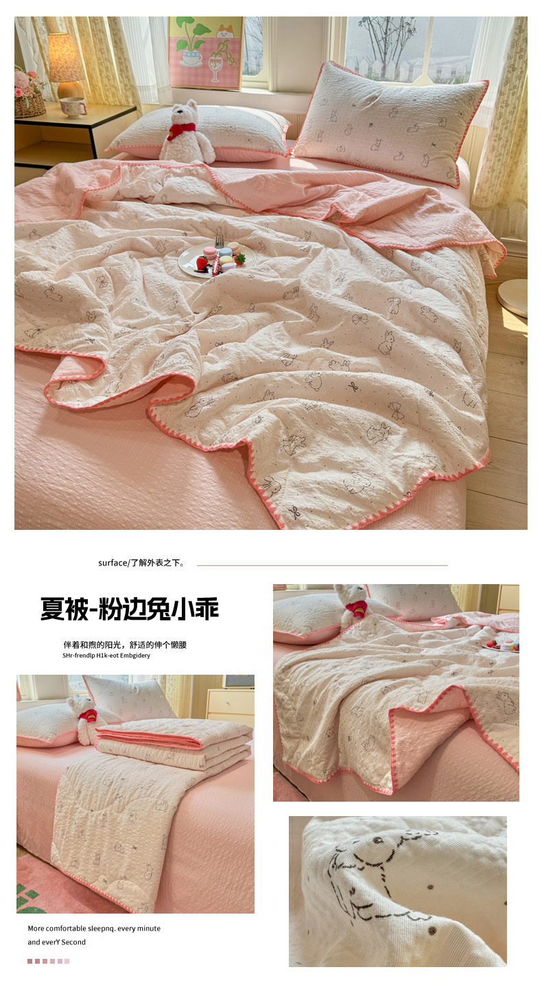 商品名称:慕澄家纺 2026新款泡芙棉贝壳边印花夏被四件套 夏被-粉边兔小乖