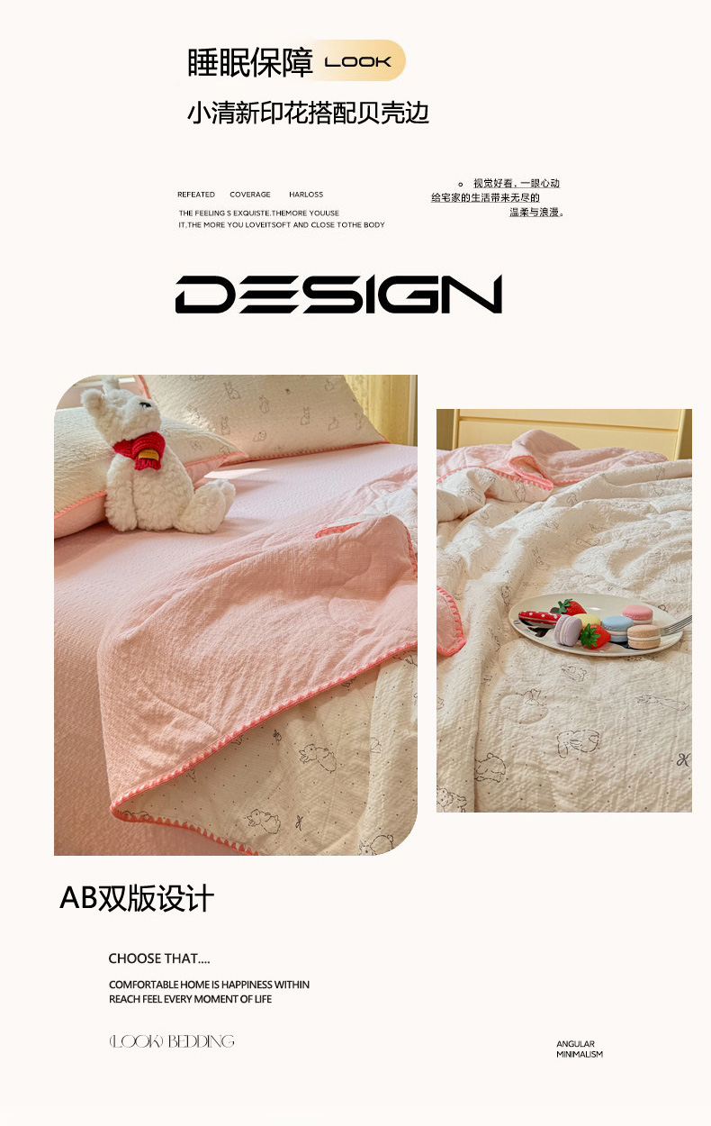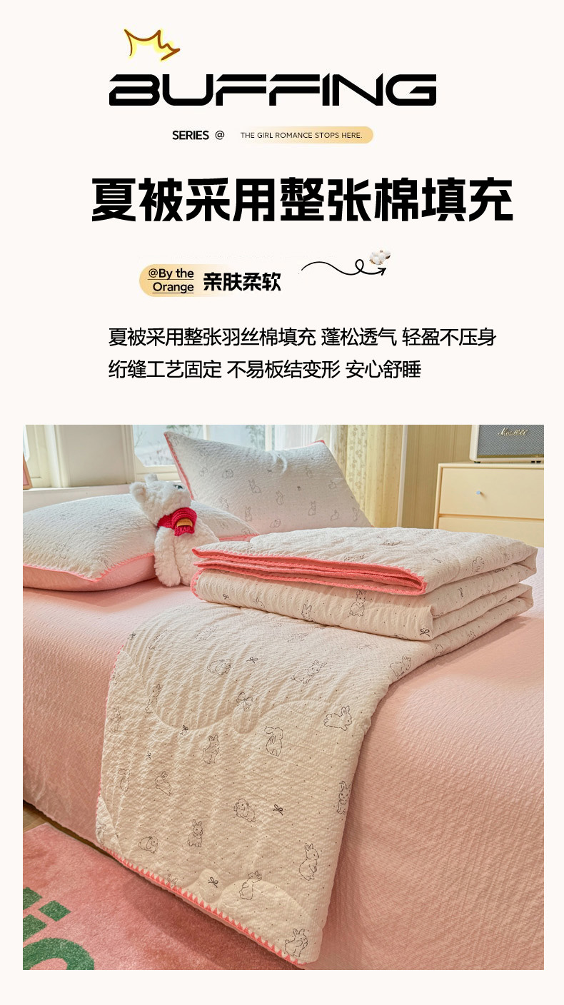 慕澄家纺 2026新款泡芙棉贝壳边印花夏被四件套 夏被-粉边兔小乖