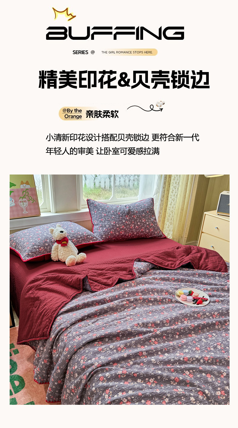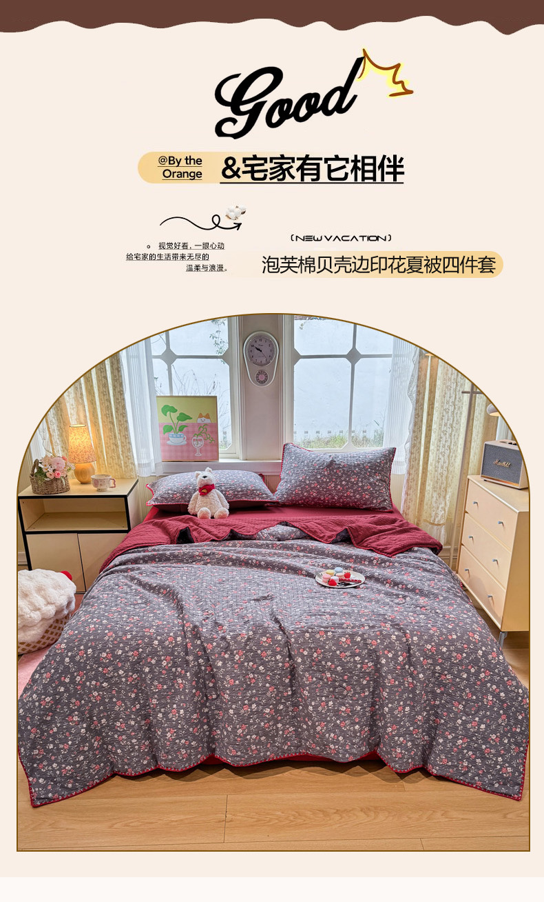 (总)慕澄家纺 2026新款泡芙棉贝壳边印花夏被四件套,夏被-粉边兔小乖,夏被-红马星野,夏被-焦糖海盐,夏被-栗栗南瓜派,夏被-奶橘小甜梦,夏被-奶蓝部落,夏被-奶雾玫瑰,夏被-青条熊猫梦,夏被-少女花田,夏被-甜莓小熊园,夏被-童话镇,夏被-午夜花园,夏被-星落小红帽,夏被-椰棕猫软糖