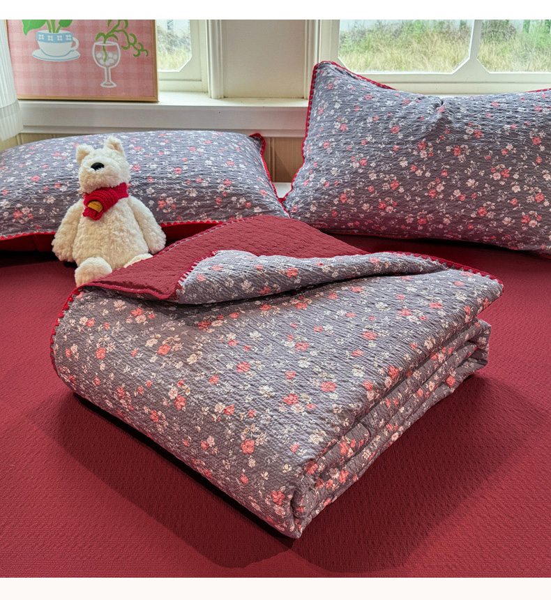 (总)慕澄家纺 2026新款小清新印花水洗棉床盖夏被四件套,小玫瑰,彩色南瓜,敦煌,灰叶,可爱小熊,蓝花樱桃,绿尧,汀兰,组合图