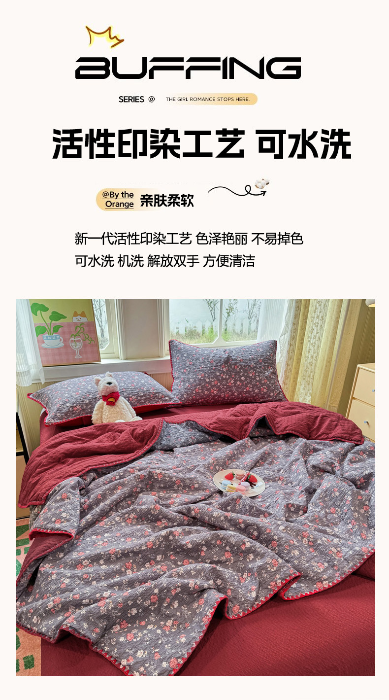 (总)慕澄家纺 2026新款小清新印花水洗棉床盖单品床盖床盖单件,组合图仅做展示不可下单,彩色南瓜,敦煌,灰叶,可爱小熊,蓝花樱桃,绿尧,汀兰,小玫瑰