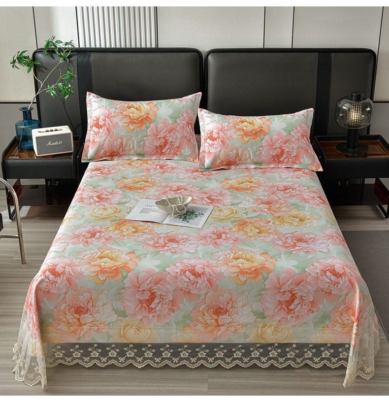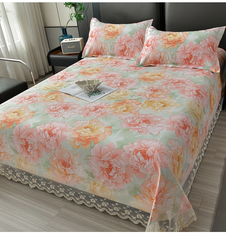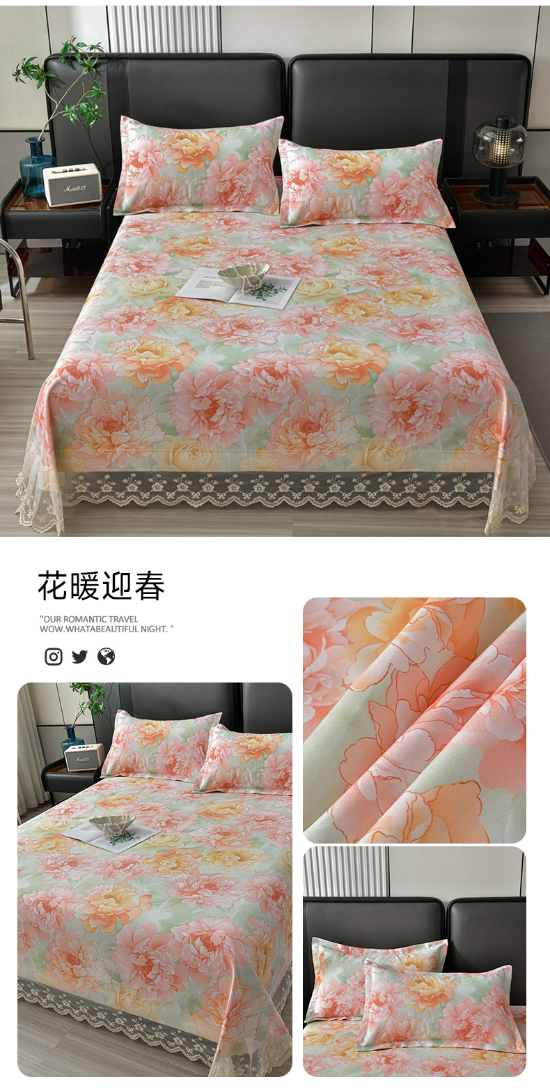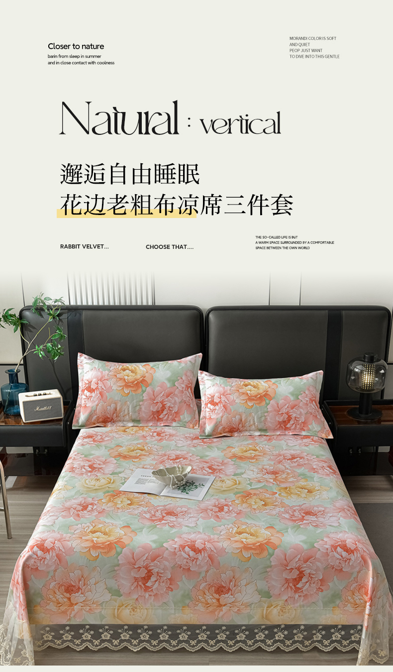 星窝家纺 2026新款花边老粗布凉席三件套 花暖迎春