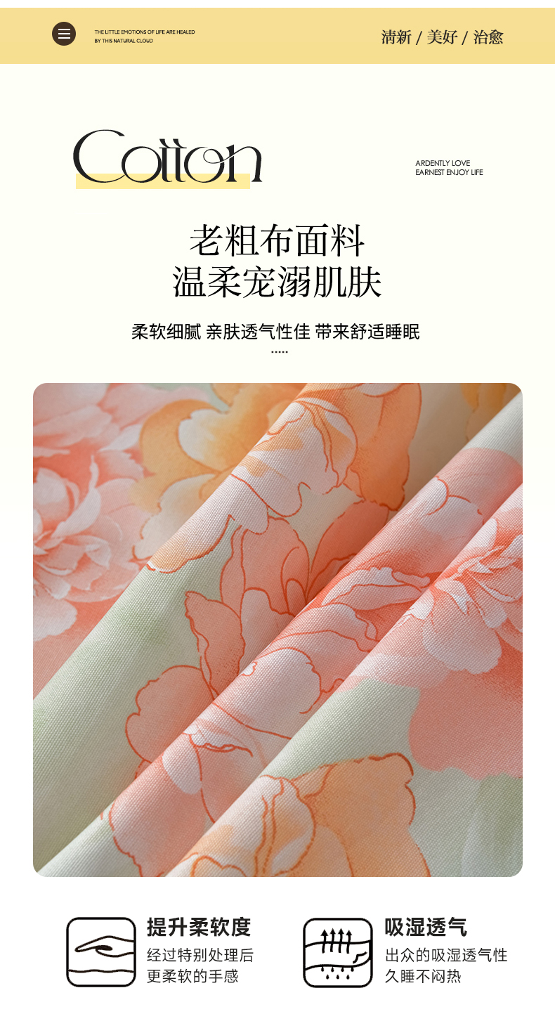 (总)星窝 2026新款复古风仿麻床盖款四件套,繁花,花蔓,金叶漫舞,抹茶格语,奶杏花蔓,青花瓷,雾蓝花簇,雾蓝小格,雾里繁花,烟紫花影
