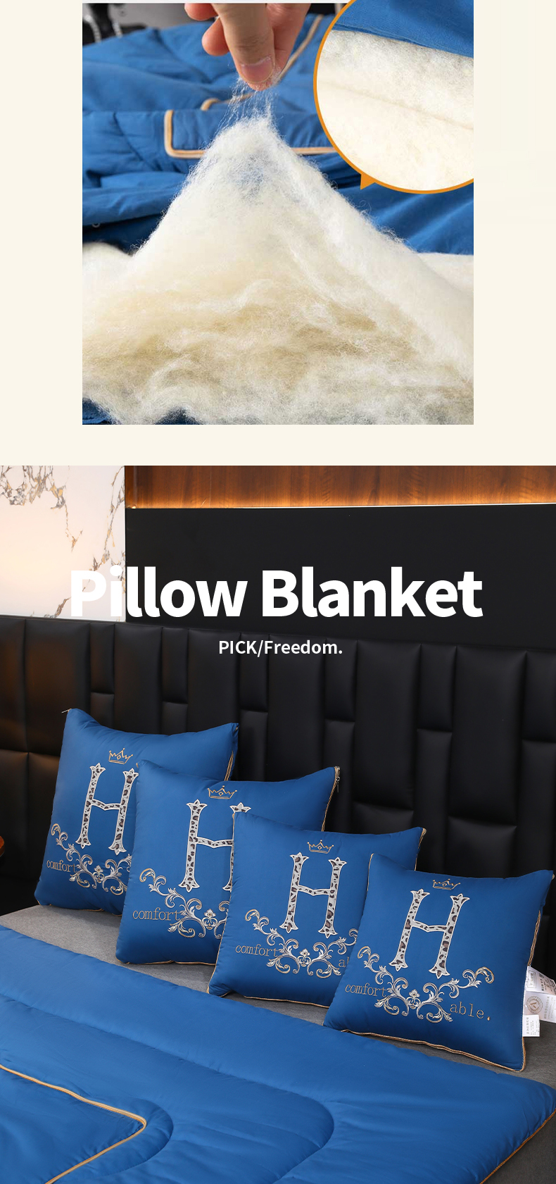 (总)照世家纺 2026新款全棉安逸H款抱枕被,孔雀蓝,咖色,深灰,浅灰,大红