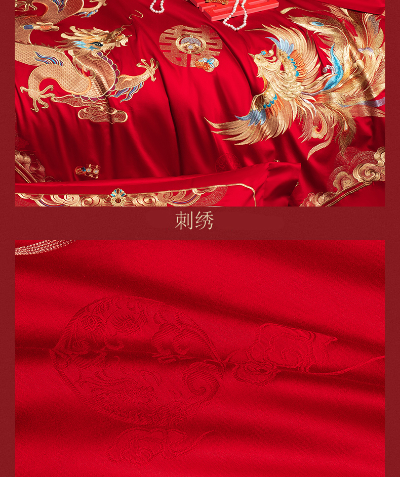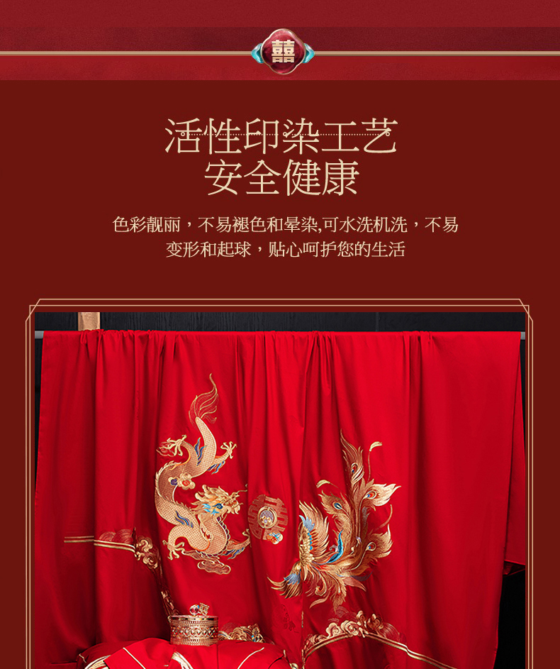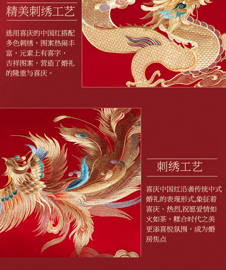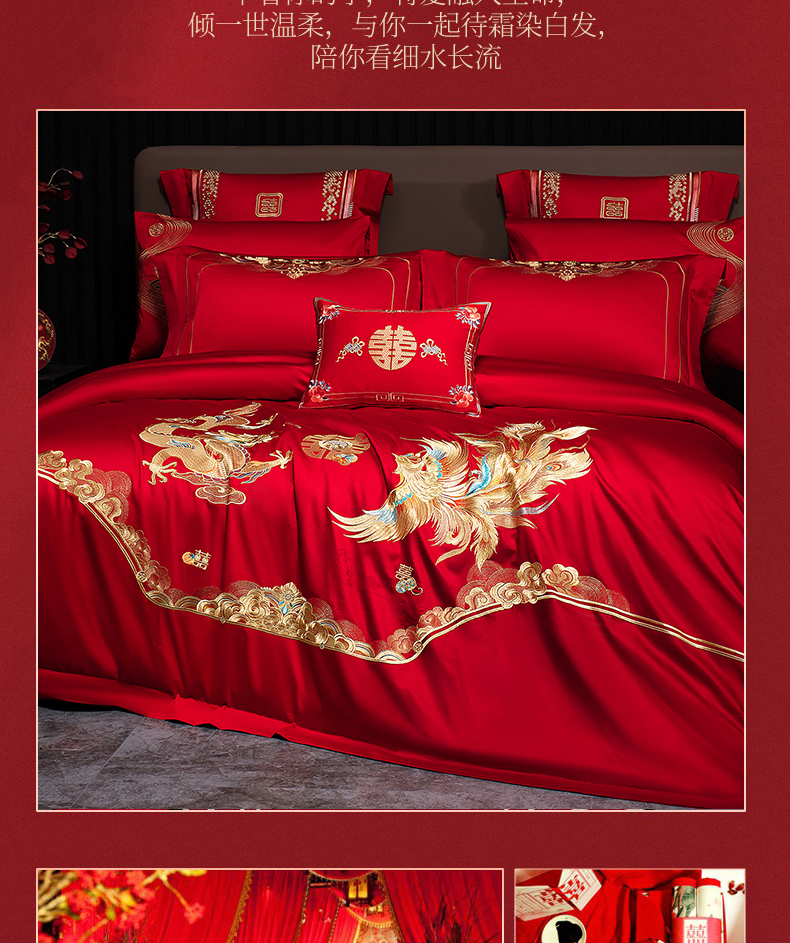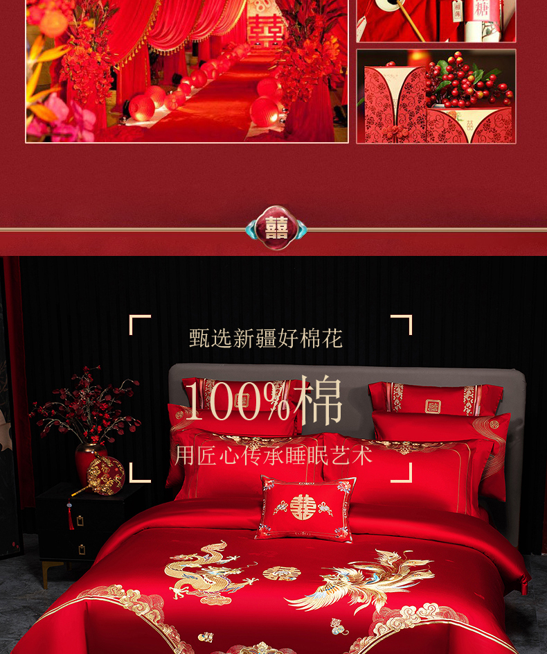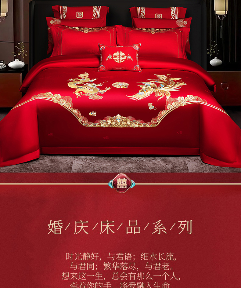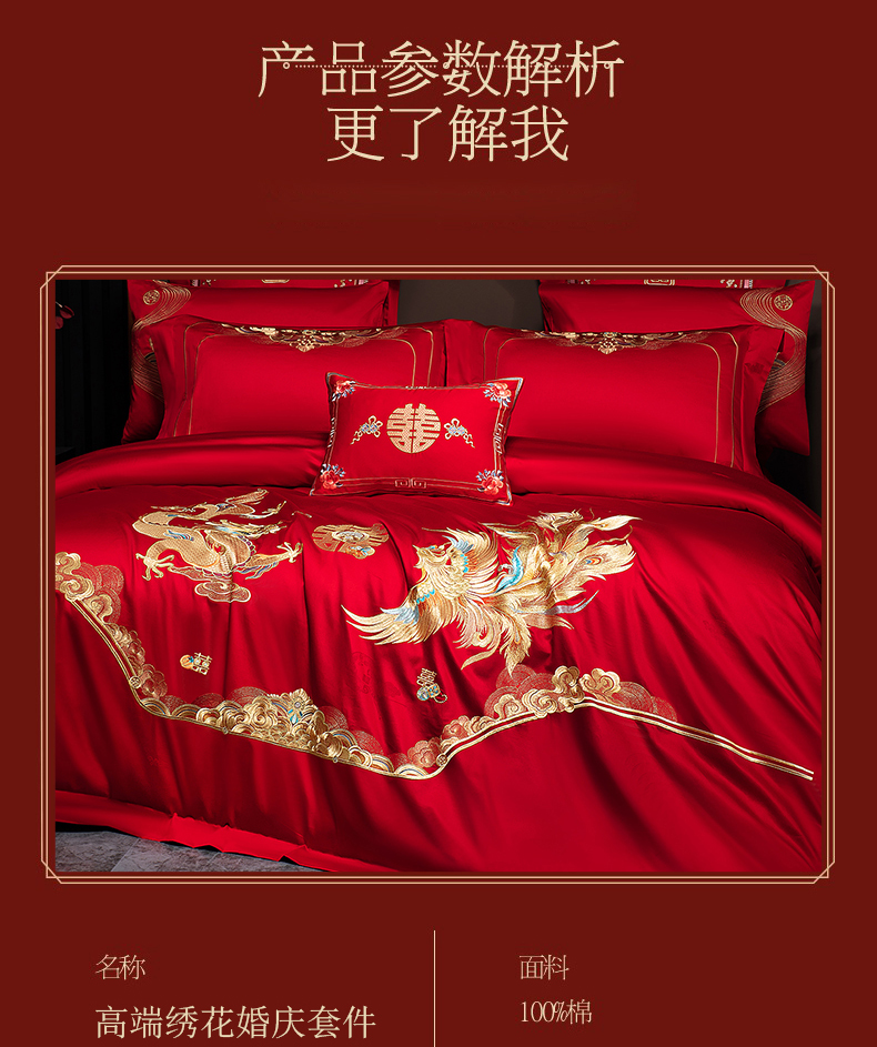 当前位置: 91家纺网 > 商品网购 > 床品套件 > 四件套 > 婚庆四件套 > 蒂爵 2026年重绣性价比款长绒棉提花全棉纯棉绣花婚庆四件套多件套大红色刺绣结床上用品 龙凤滕欢