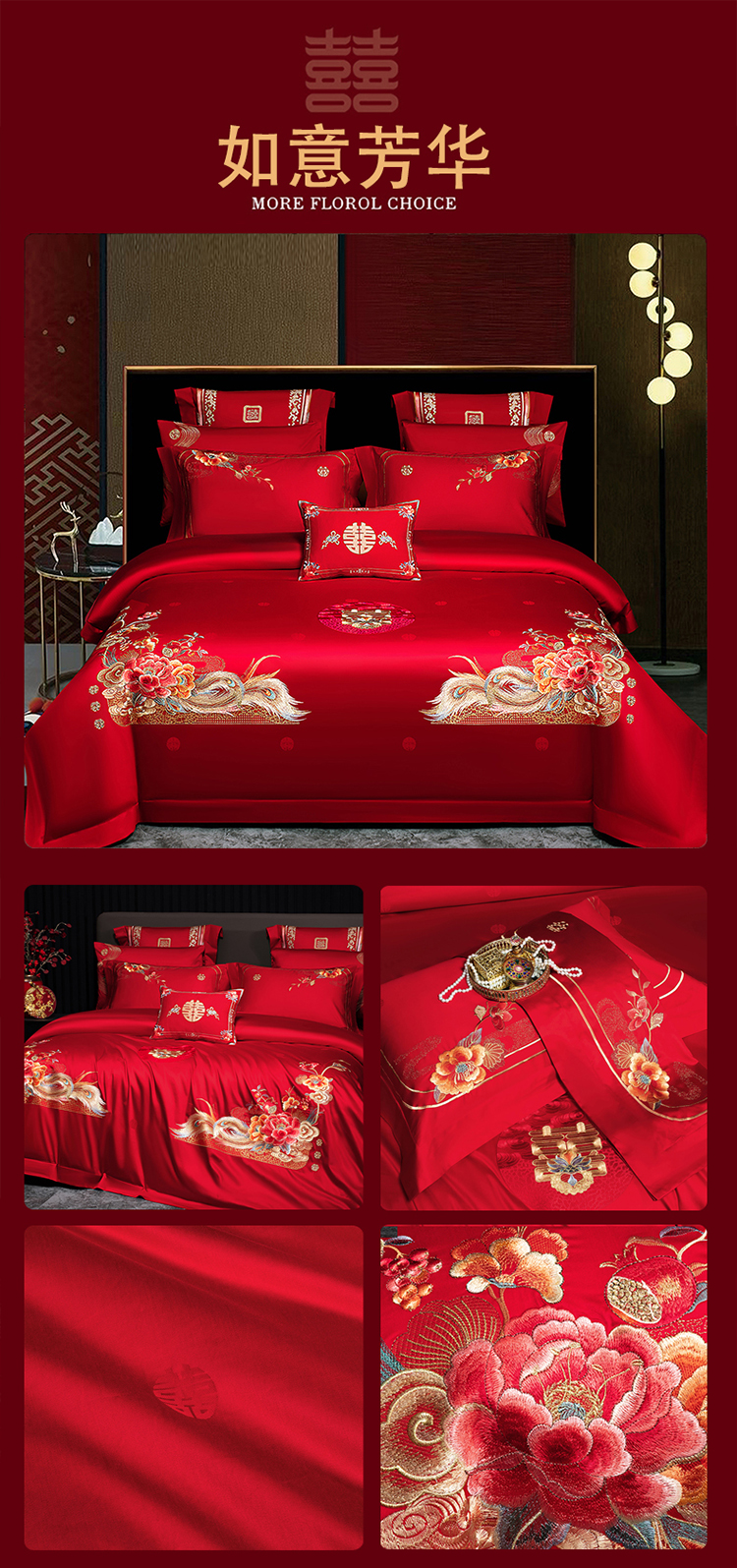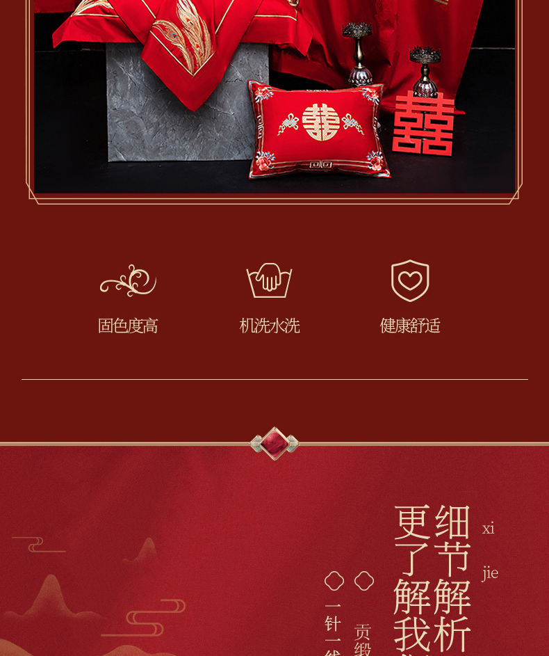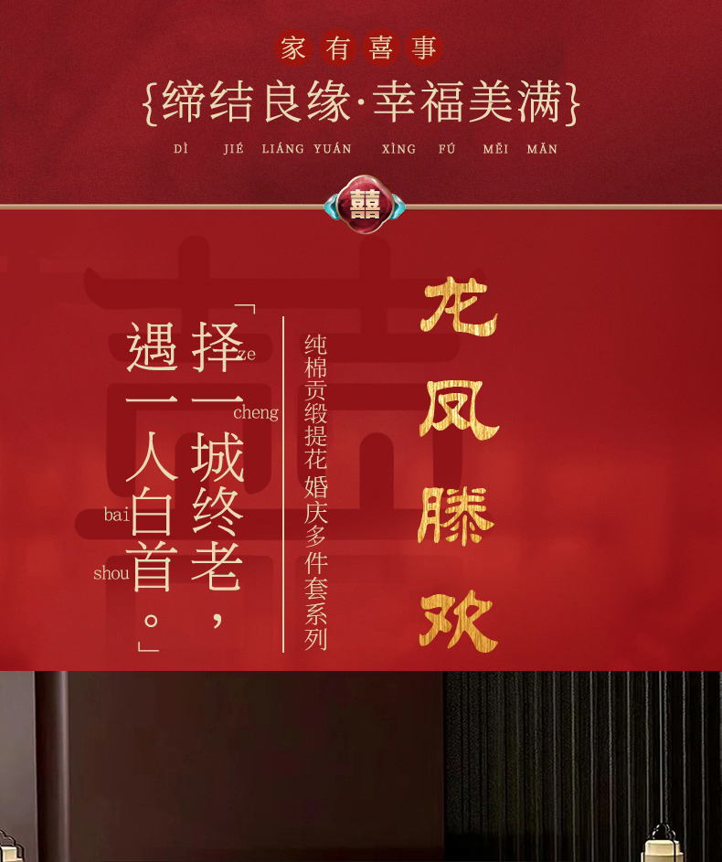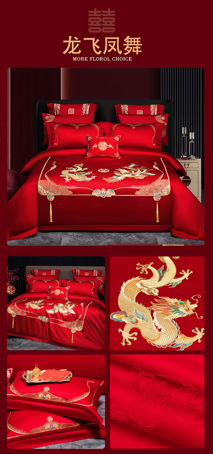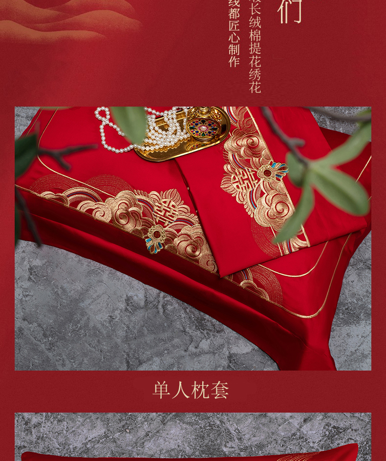 当前位置: 91家纺网 > 商品网购 > 床品套件 > 四件套 > 婚庆四件套 > 蒂爵 2026年重绣性价比款长绒棉提花全棉纯棉绣花婚庆四件套多件套大红色刺绣结床上用品 龙凤滕欢