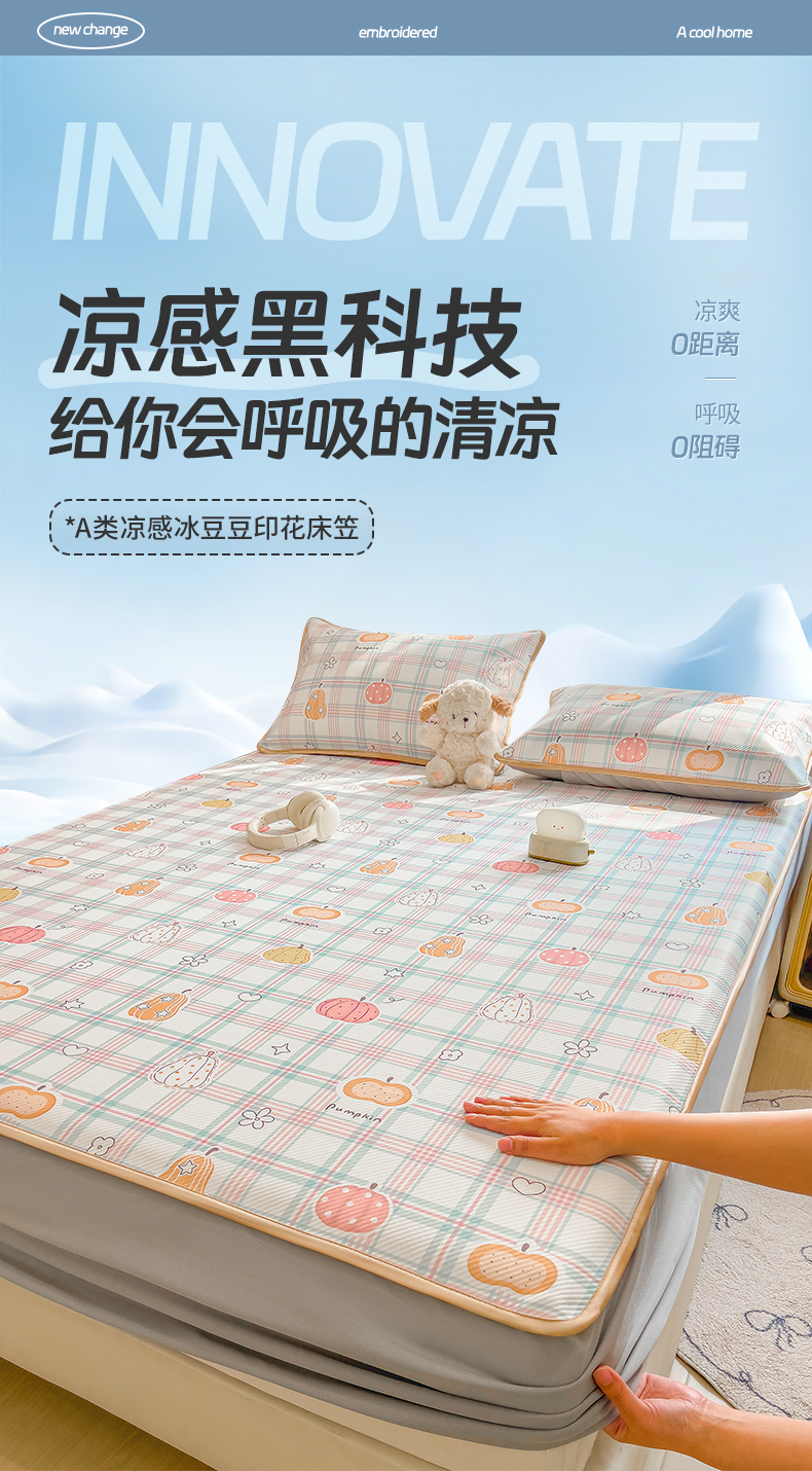 莱米家纺 2026新款斜纹凉感床笠冰豆豆系列 萌宠甜兔