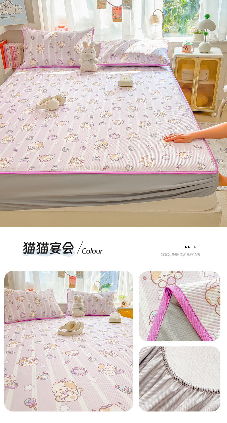 (总)莱米家纺 2026新款斜纹凉感床席冰豆豆系列,豹纹小猫,彩色木马,从草集,花朵小猫,花仙子,兰花小兔,蓝格小狗,浪漫花语,猫猫宴会,猫咪乐园,萌宠甜兔,泡芙小狗,条纹小熊,小南瓜,叶子小熊