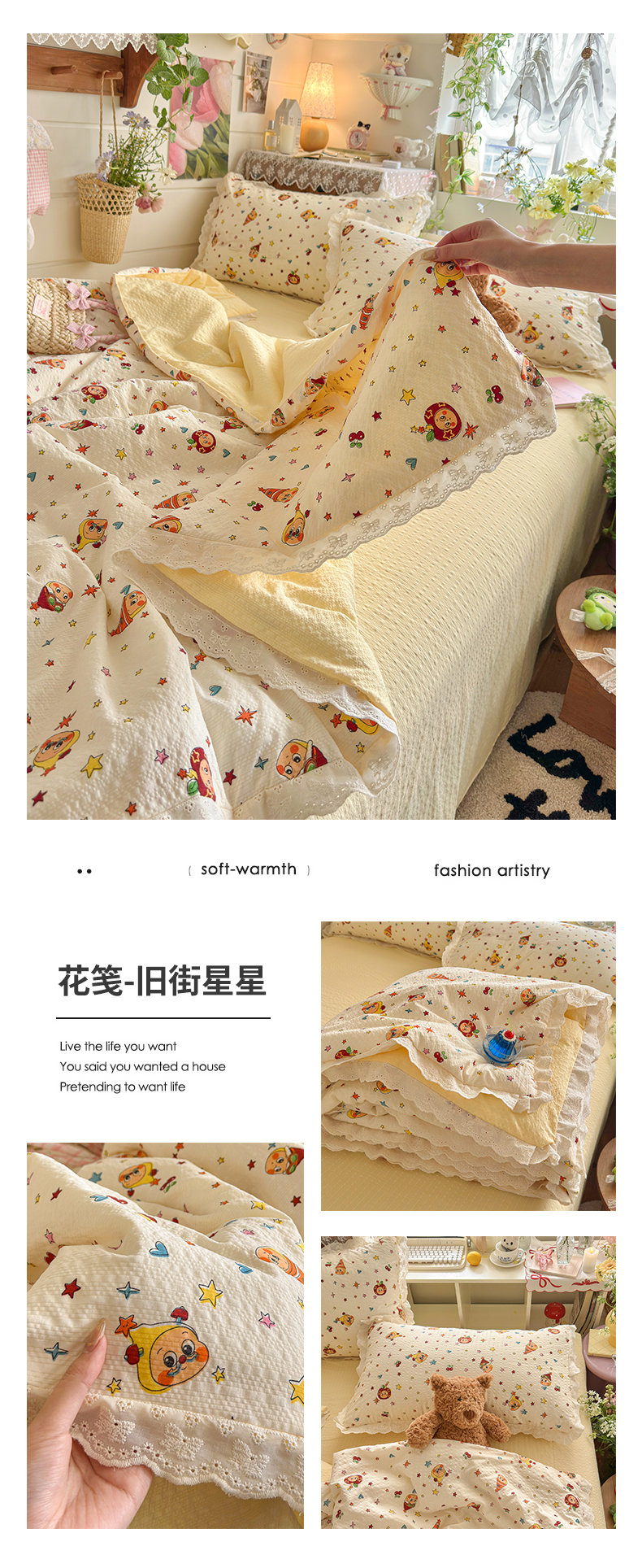 (总)初念 2025新款亲肤舒适双层纱云感纱小花边四件套-拾光,拾光-芭比兔,拾光-复古浪漫,拾光-花丛萌兔,拾光-花丛女孩,拾光-少女象,拾光-狮子唱片,拾光-思念女孩,拾光-星眠云野