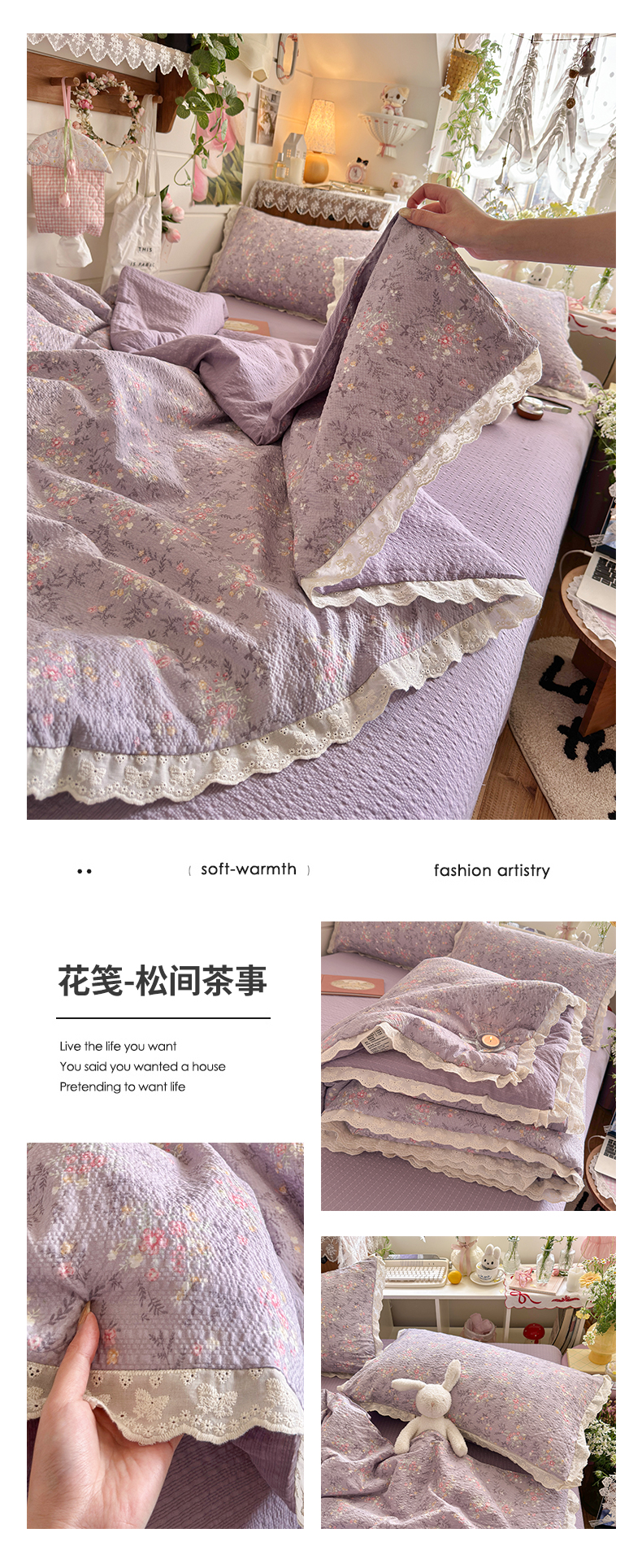 (总)初念 2025春夏新款韩式花边云感纱四件套-蔷薇波点系列(提供买家秀),蔷薇-波点粉,蔷薇-波点黄,蔷薇-波点咖,蔷薇-波点蓝,蔷薇-波点紫