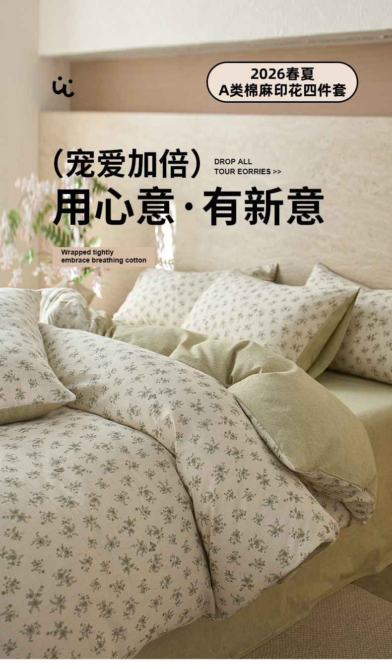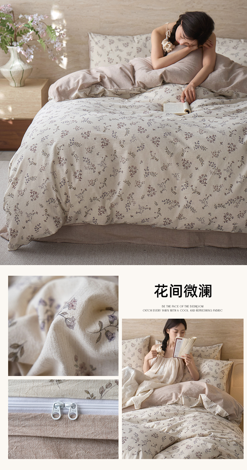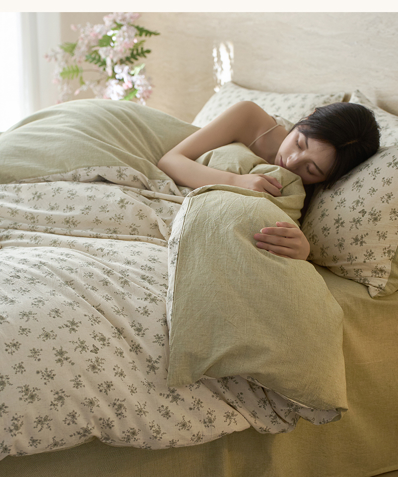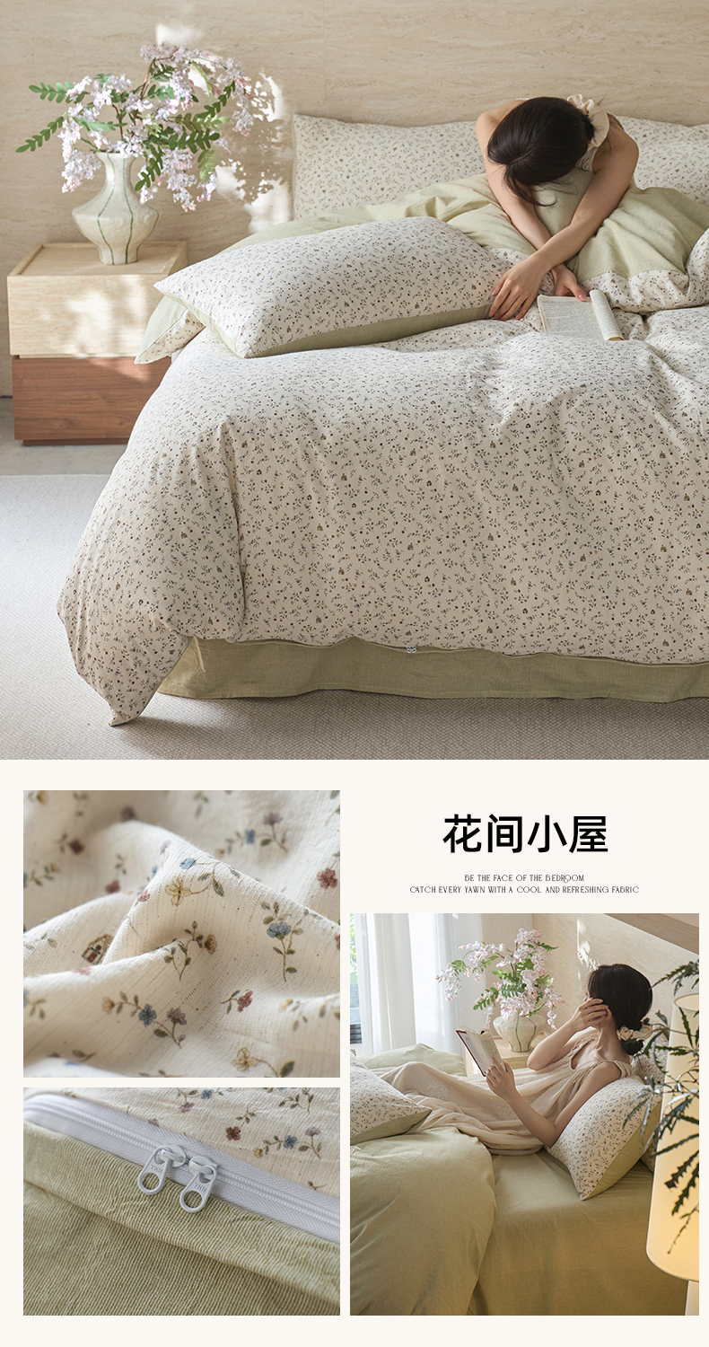 当前位置: 91家纺网 > 商品网购 > 床品套件 > 四件套 > 棉麻四件套 > 亿梵家居 2026春夏新款A类棉麻印花四件套 清风蝶语