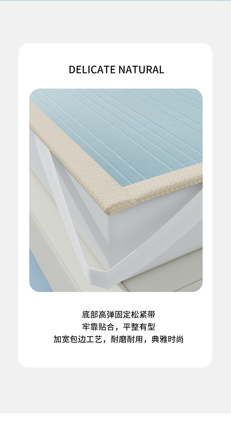 • 91家纺网 家纺一手货源 找家纺 (总)曼陀罗 2026新款凉感海洋丝冰咖条纹凉席-床笠款,冰川灰,天之蓝,草原绿,粉黛玉,海之蓝