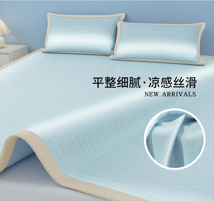 • 91家纺网 家纺一手货源 找家纺 (总)曼陀罗 2026新款凉感海洋丝冰咖条纹凉席-平铺款,冰川灰,天之蓝,草原绿,粉黛玉,海之蓝