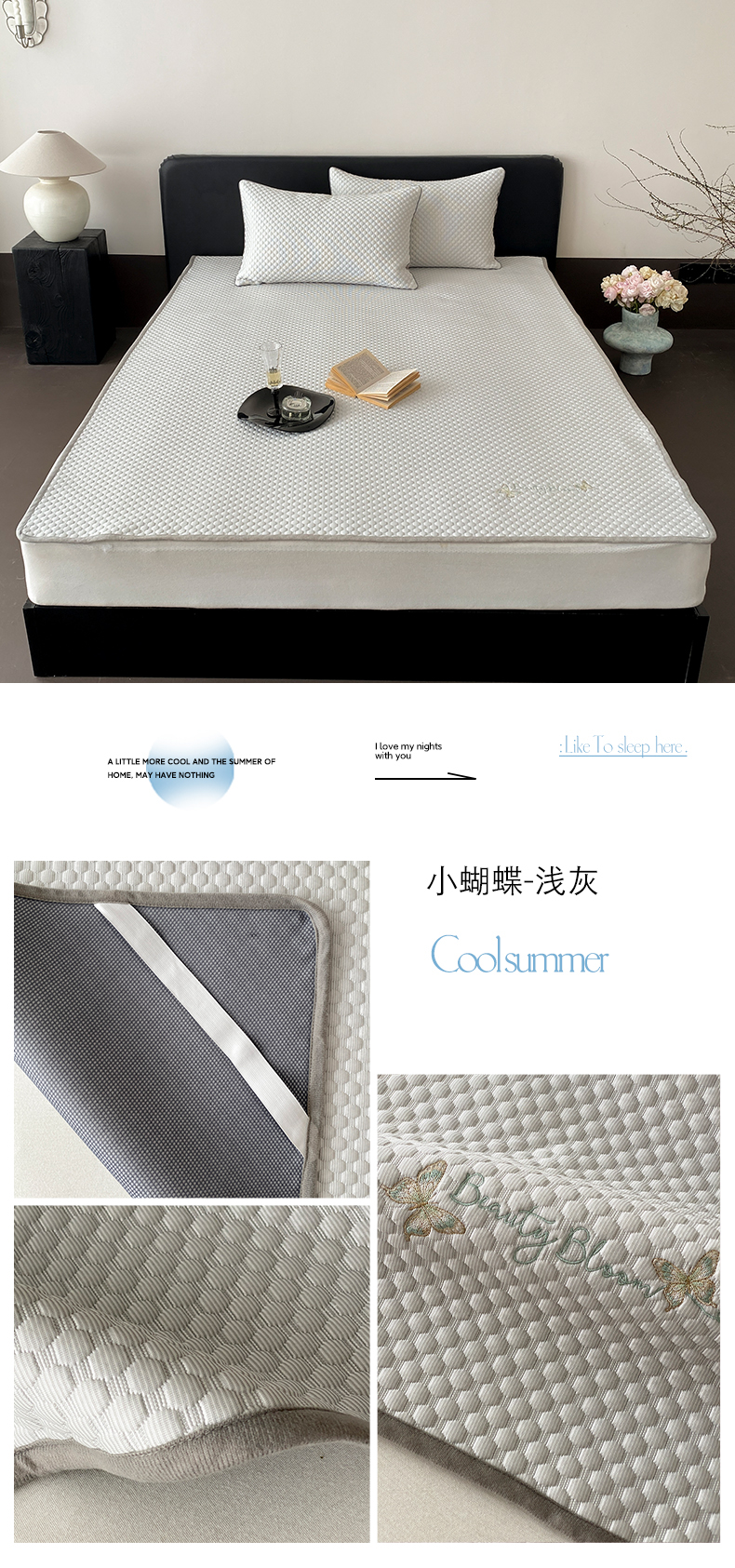(总)云栖家居 2026新款春夏凉豆豆PE冰感凉席席子三件套软平席-小蝴蝶,浅灰,粉紫,浅蓝,组合图仅供展示不可下单,包装仅供展示不可下单