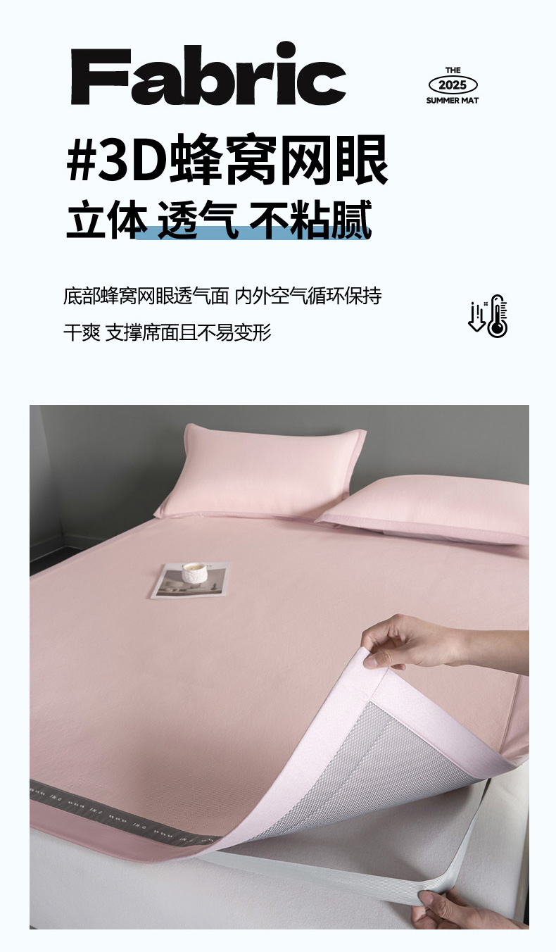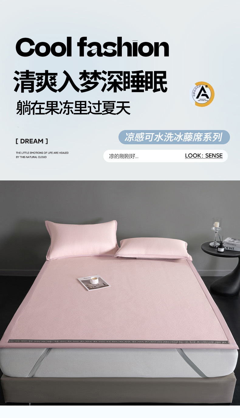 印季家纺 2026新款可水洗织带款凉感冰藤软席 粉色