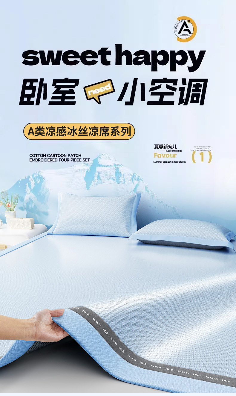 (总)印季家纺 2025新款轻奢简约凉感丝泡泡席-格调凉席,藏蓝,米黄,墨绿,浅粉,银灰