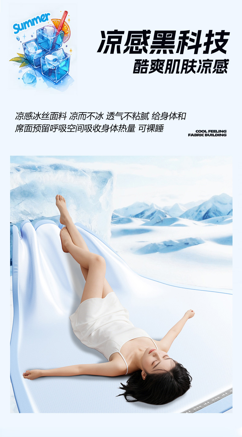 印季家纺 2026新款织带款纯色凉感丝软席 蓝