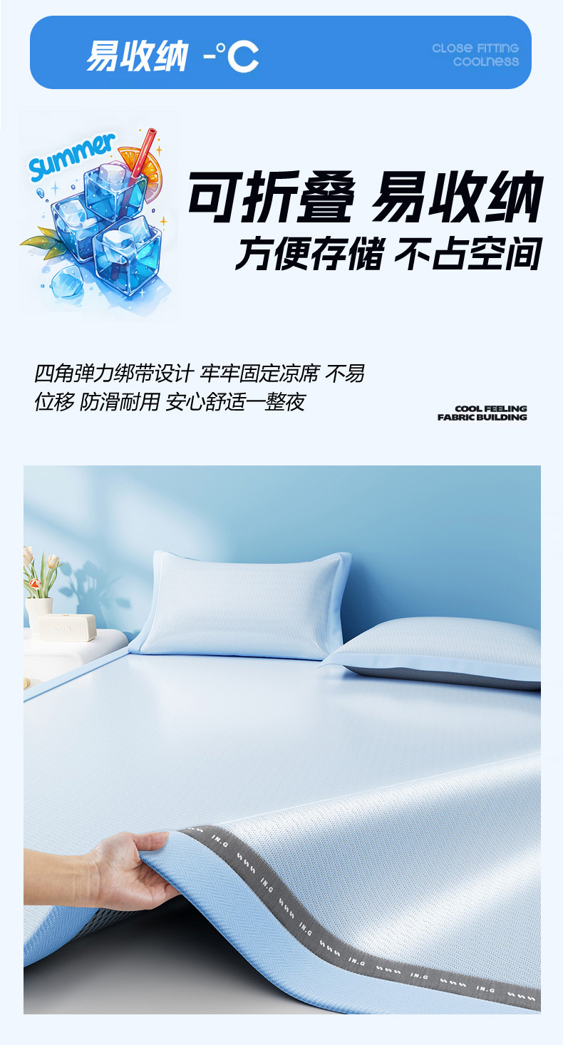 商品名称:印季家纺 2026新款织带款纯色凉感丝软席 蓝
