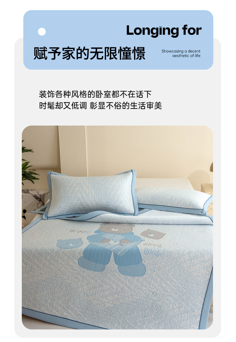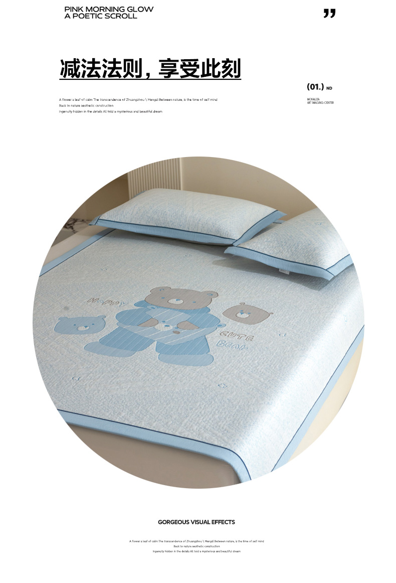 商品名称:印季家纺 2026新款卡通大版提花冰爽凉感丝凉席席子 熊宝宝