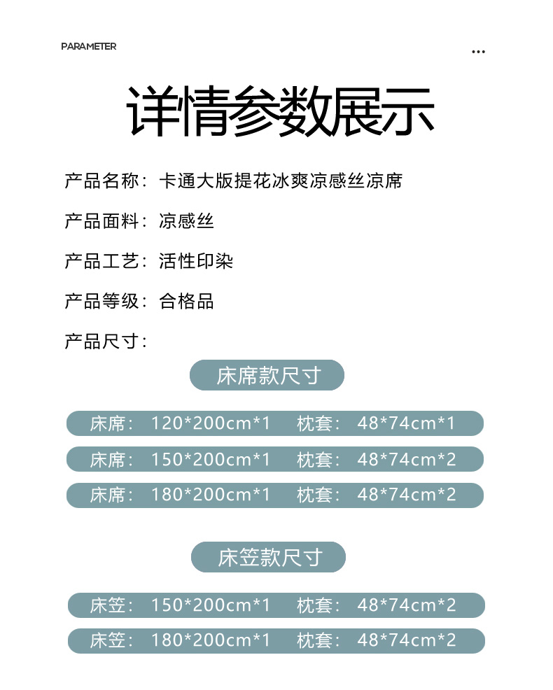 (总)印季家纺 2026新款卡通凉感提花豆豆席凉席席子三件套,大白鹅,粉粉兔,蝴蝶结,滑板狗,蓝兔,条纹熊,西瓜,小黑羊,熊宝宝,组合图仅供展示不可下单