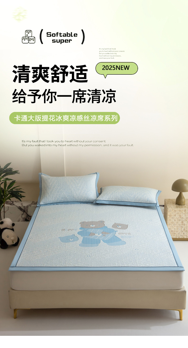 印季家纺 2026新款卡通大版提花冰爽凉感丝凉席席子 熊宝宝