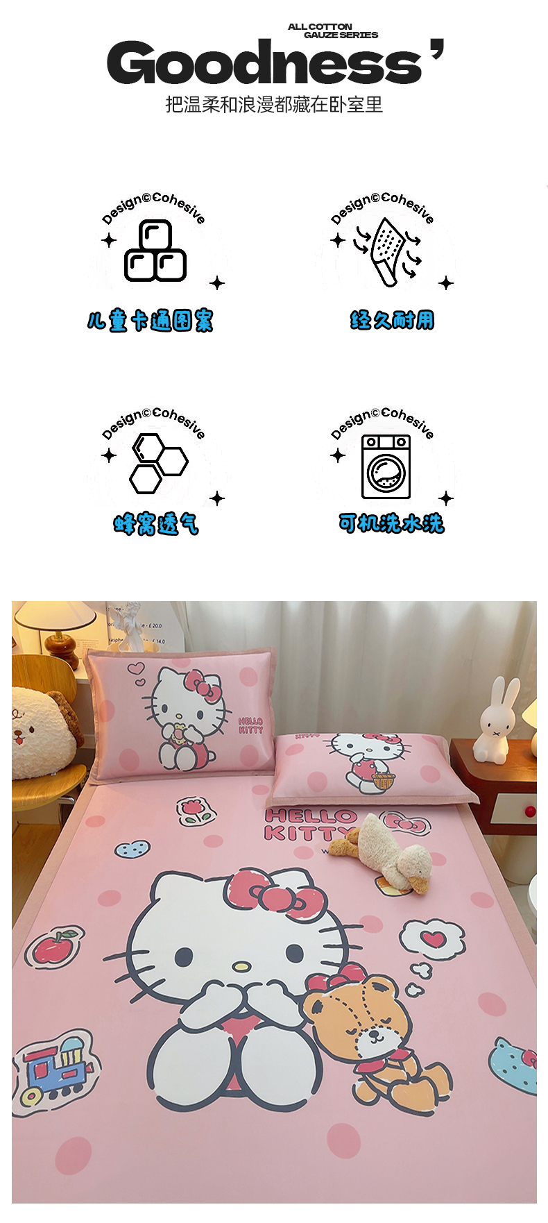 商品名称:云恋家纺 2026春夏新款大阪卡通冰丝凉席席子空调软席套件 大阪-优雅凯蒂