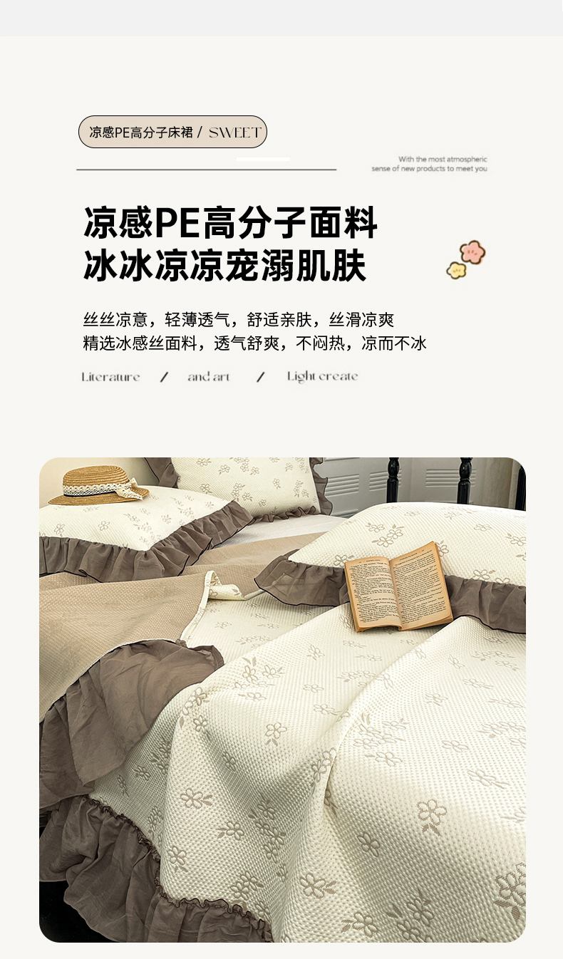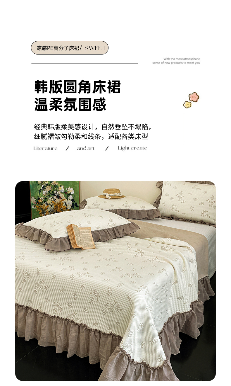 (总)金绣美居 2026新款PE高分子凉感席聚乙烯冰感床裙款凉席三件套-韩式系列,韩恋,花朝,棠梨,星落,迎风,郁香