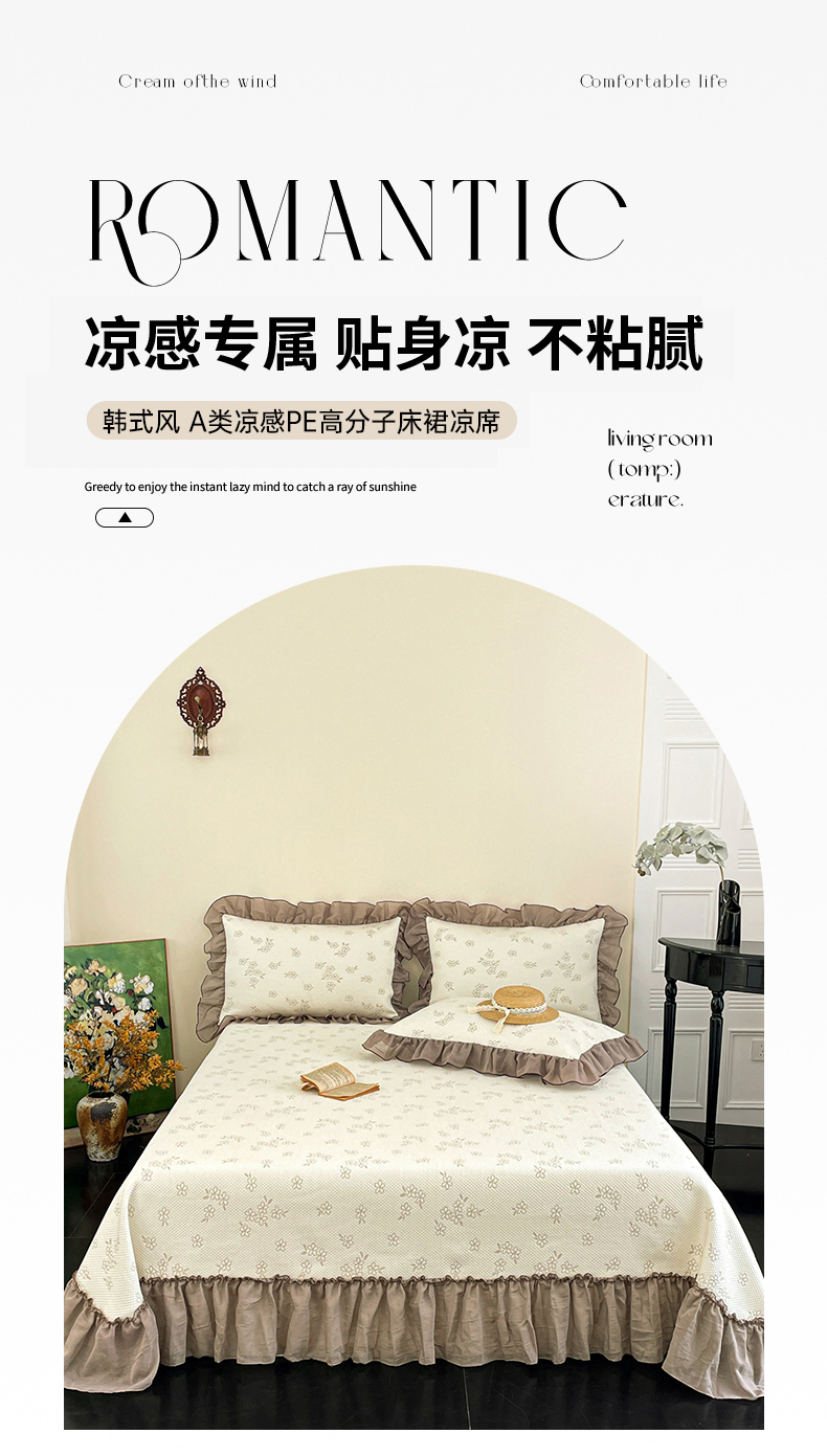 商品名称:金绣美居 2026新款PE高分子凉感席聚乙烯冰感床裙款凉席三件套-韩式系列 棠梨