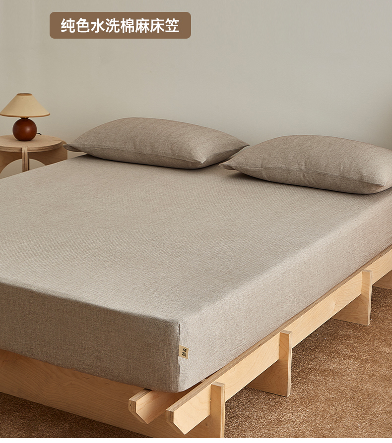 商品名称:女子家纺 2026新款纯色水洗棉麻床笠单床笠床笠单件 时空灰