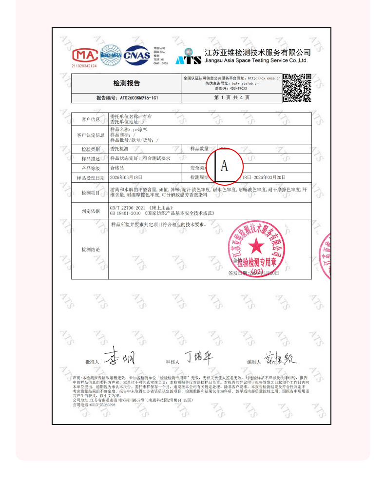 4、通州区市场监管局川姜分局友情提醒:近期针对抗静电,无静电,抗菌防螨,及有关舒适度,百分比的举报高发。为不影响商品正常销售,请各商家高度重视,自检自查及时整改,谢谢配合!