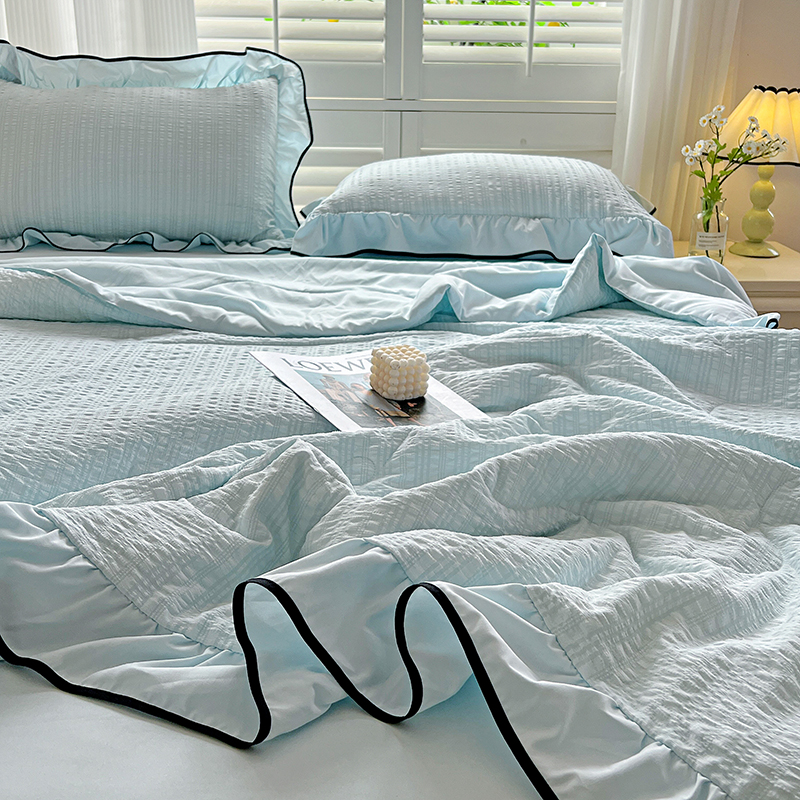 仟网汇 2026新款赫本纯色泡泡纱花边款夏被夏凉被空调被四件套 起司