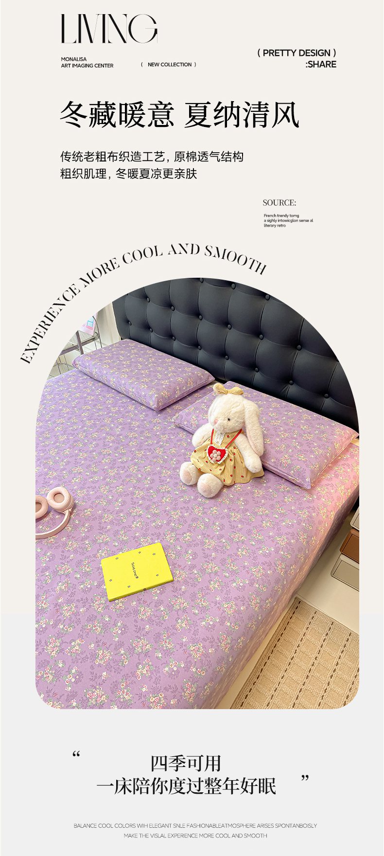 • 91家纺网 家纺一手货源 找家纺 欧妮家纺 2026新款老粗布床单凉席席子单床单 老粗布-紫韵繁花