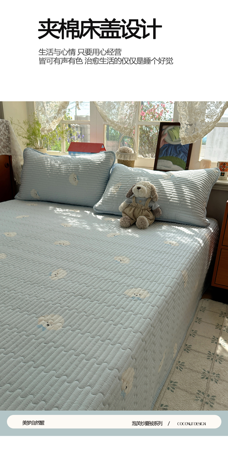 (总)几禾 2026新款A类云感双层纱夏被木棉皱皱纱棉花被小清新印花夏被夏凉被费尔岛空调被,奔跑猫,蛋糕派,可可小狗,蓝枝,猫趣,抹茶小猫,嫩芽,泡芙狗,软萌狗,狮子派对,兔子乐队,顽皮熊粉,顽皮熊蓝,挽歌,摘星