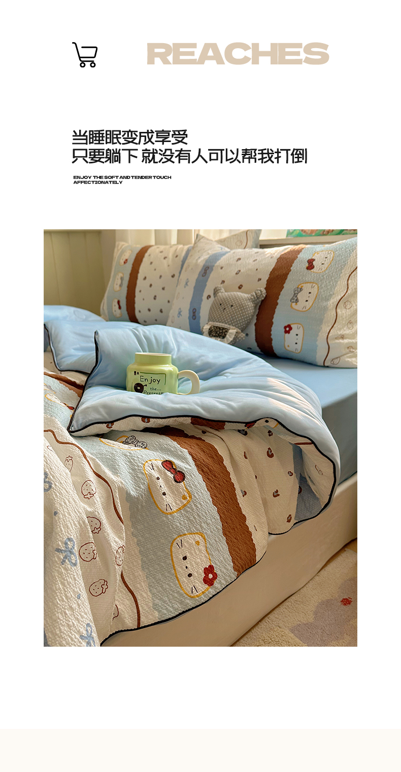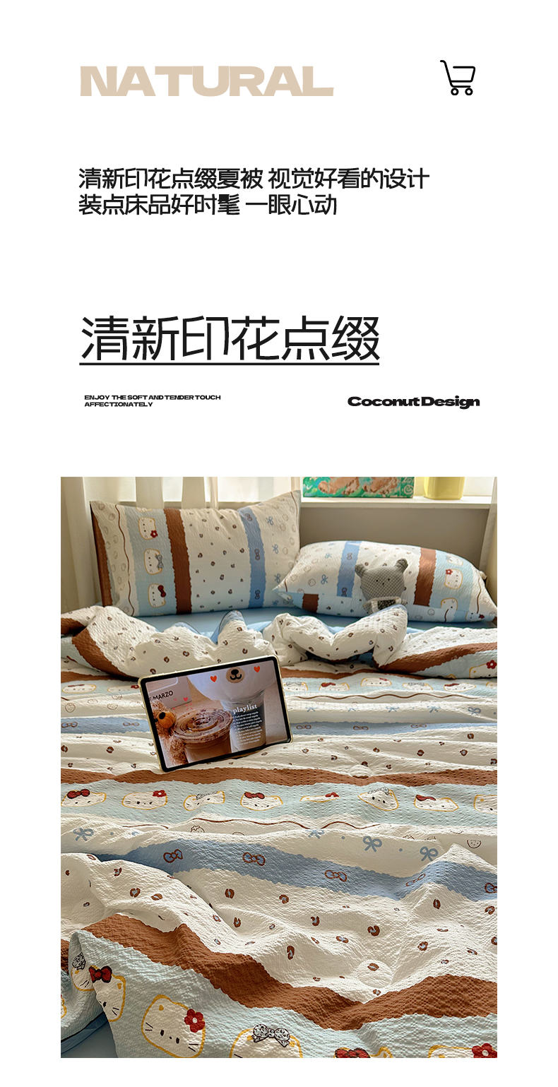 商品名称:初念 2026新款泡芙纱单夏被凉糖系列(凉而不冰的触感,清凉与柔软兼得) 凉糖-可可小猫条