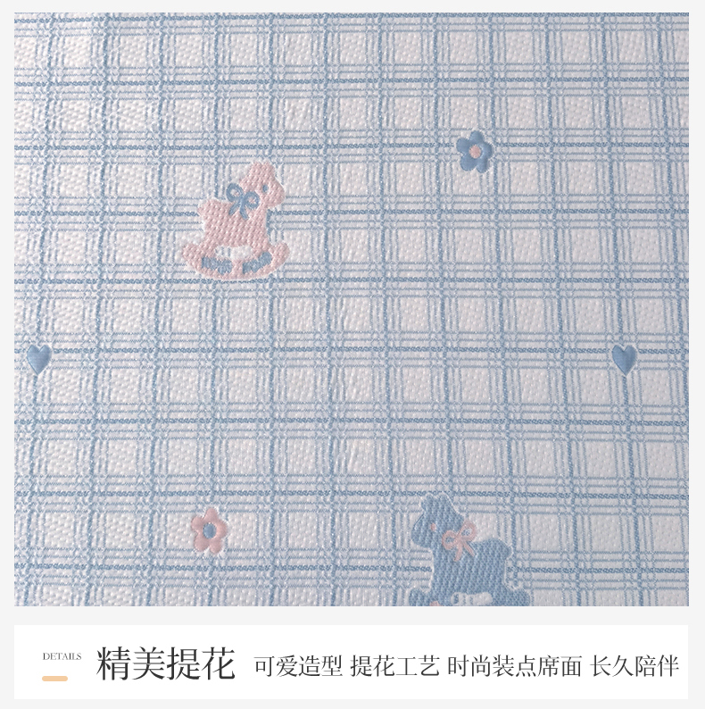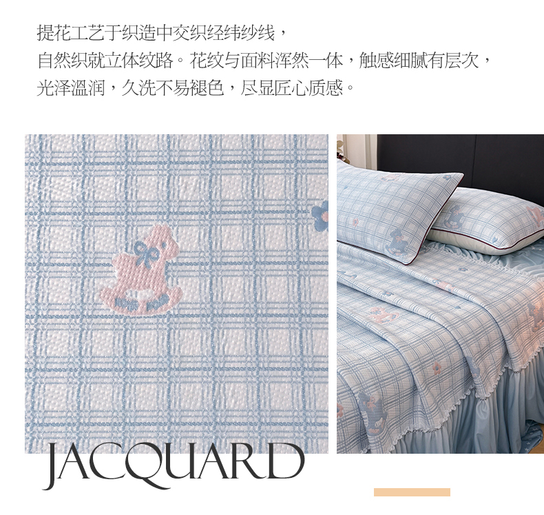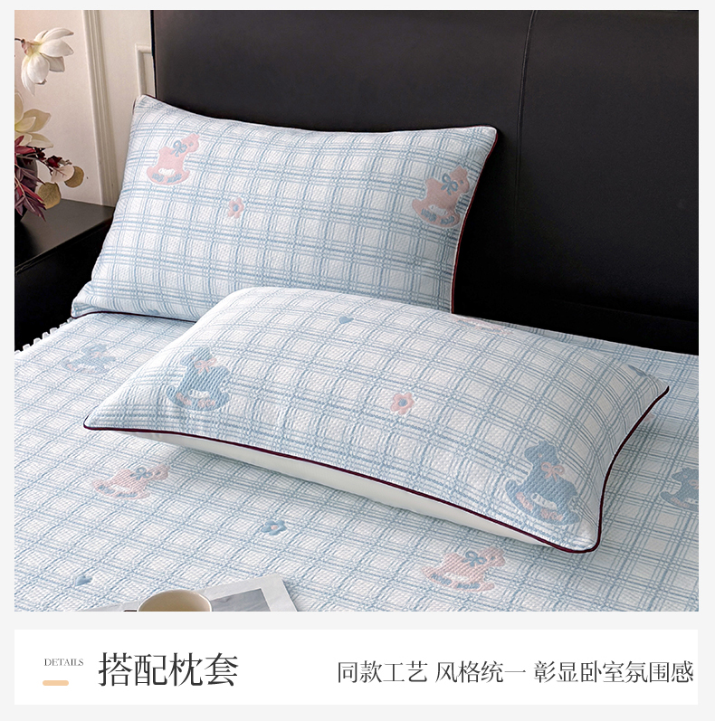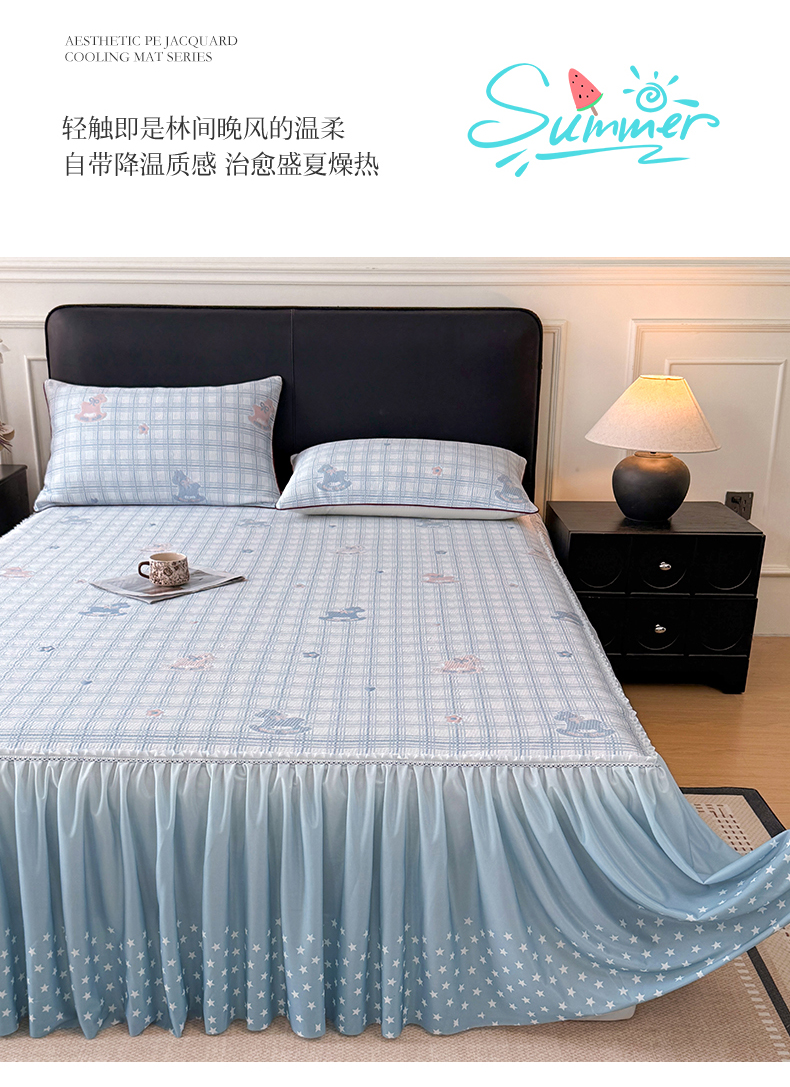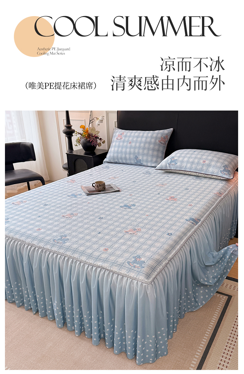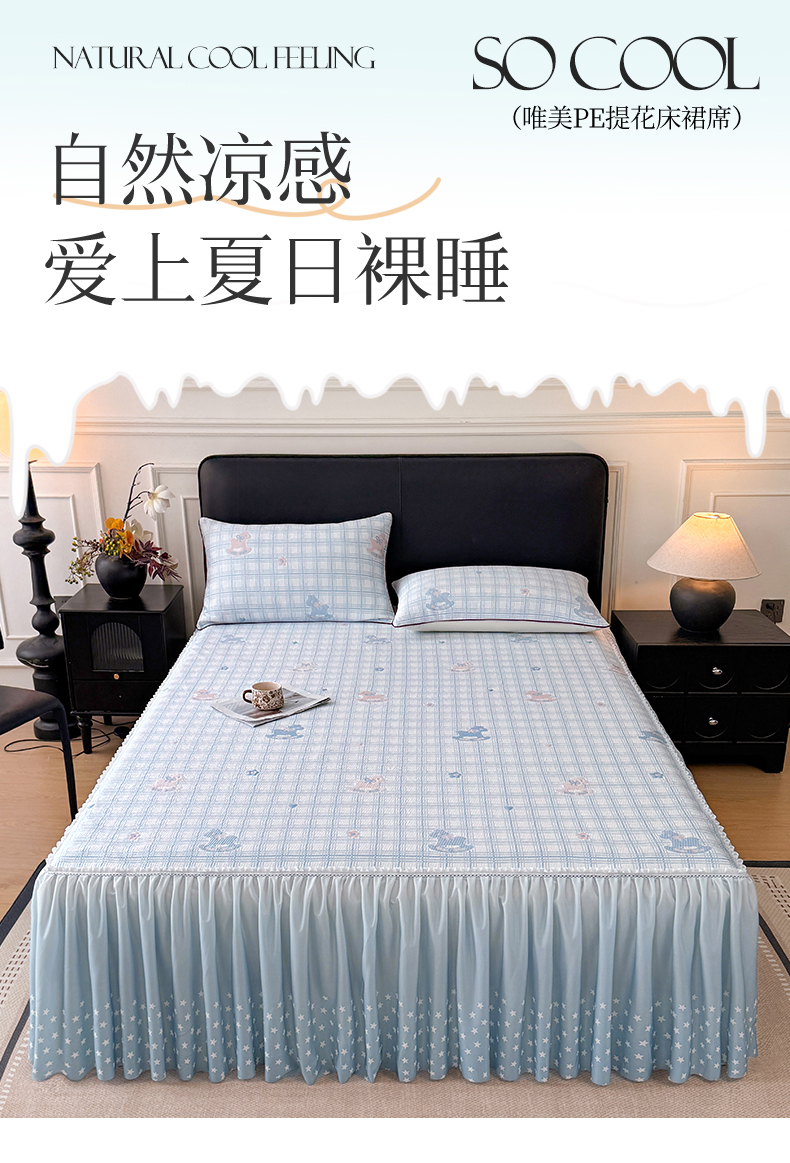 商品名称:情恒家纺 2026新款卡通摇摇马PE提花床裙席席子凉席三件套 摇摇马-冰蓝