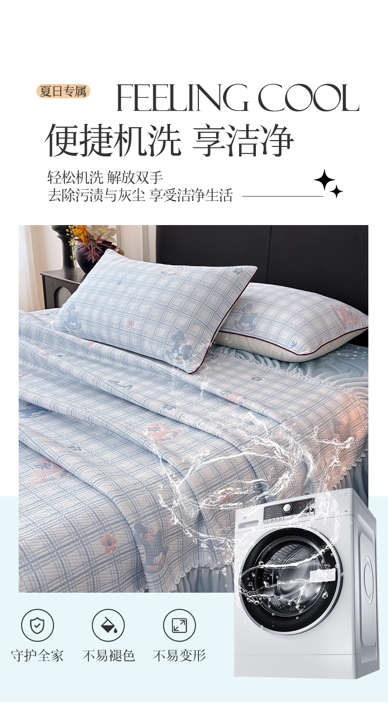 (总)情恒家纺 2025新款凉感豆豆床盖款三件套(淡雅竹香),冰川蓝,星耀灰,树莓粉,牛油果绿,雾蓝