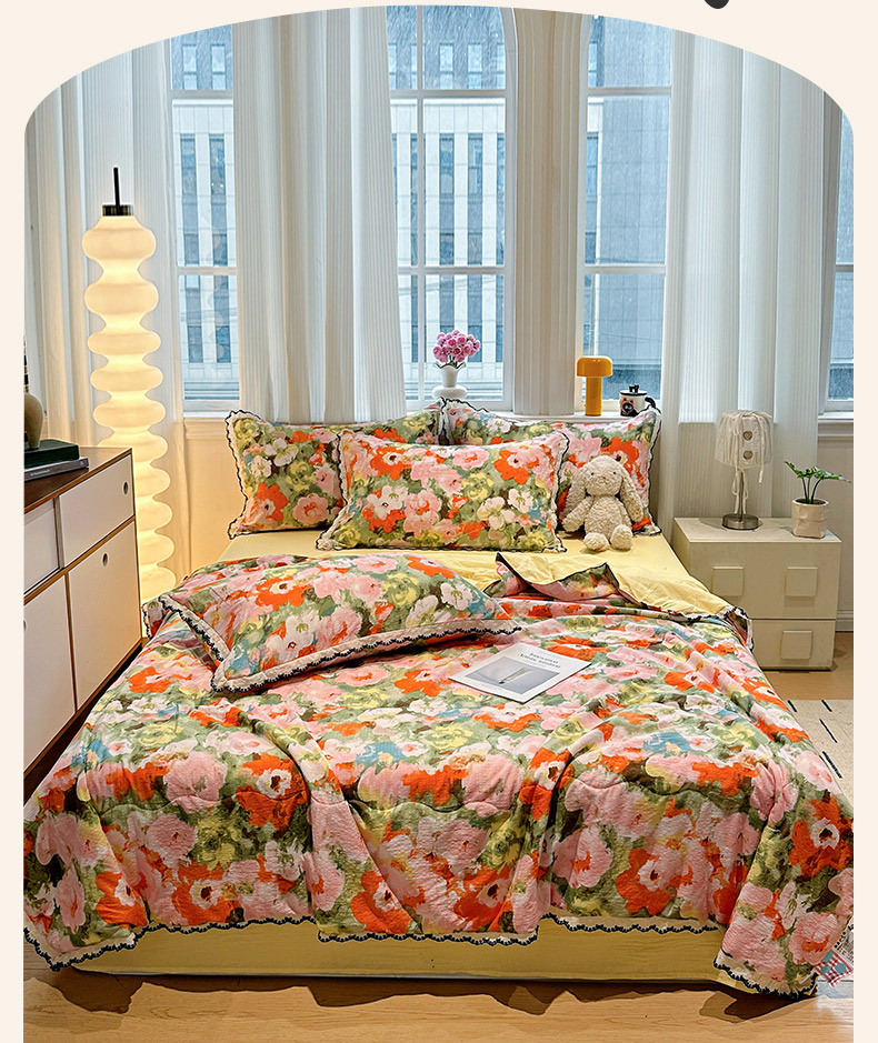 • 91家纺网 家纺一手货源 找家纺 花伞家居 2026新款蕾丝花边皱皱双层纱夏被四件套含买家秀 夏被-彩色可爱