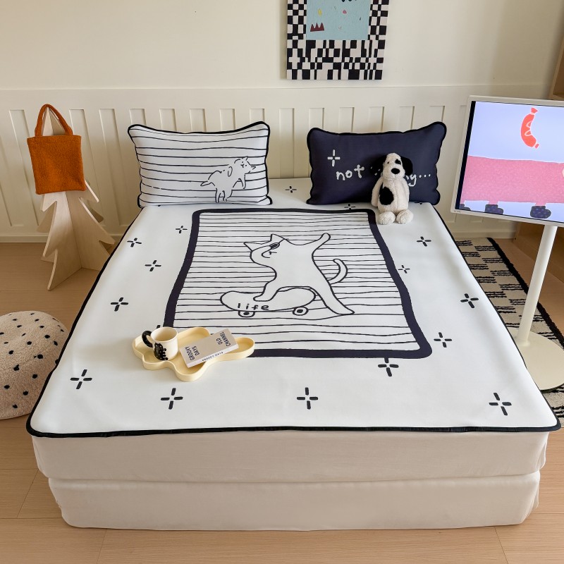 (总)顾里家纺 2026新款Pe凉感仿冰藤软席凉席三件套,滑板腊肠狗,苹果木马,苹果趴熊,甜圈小猫,香蕉熊,组合图仅供展示