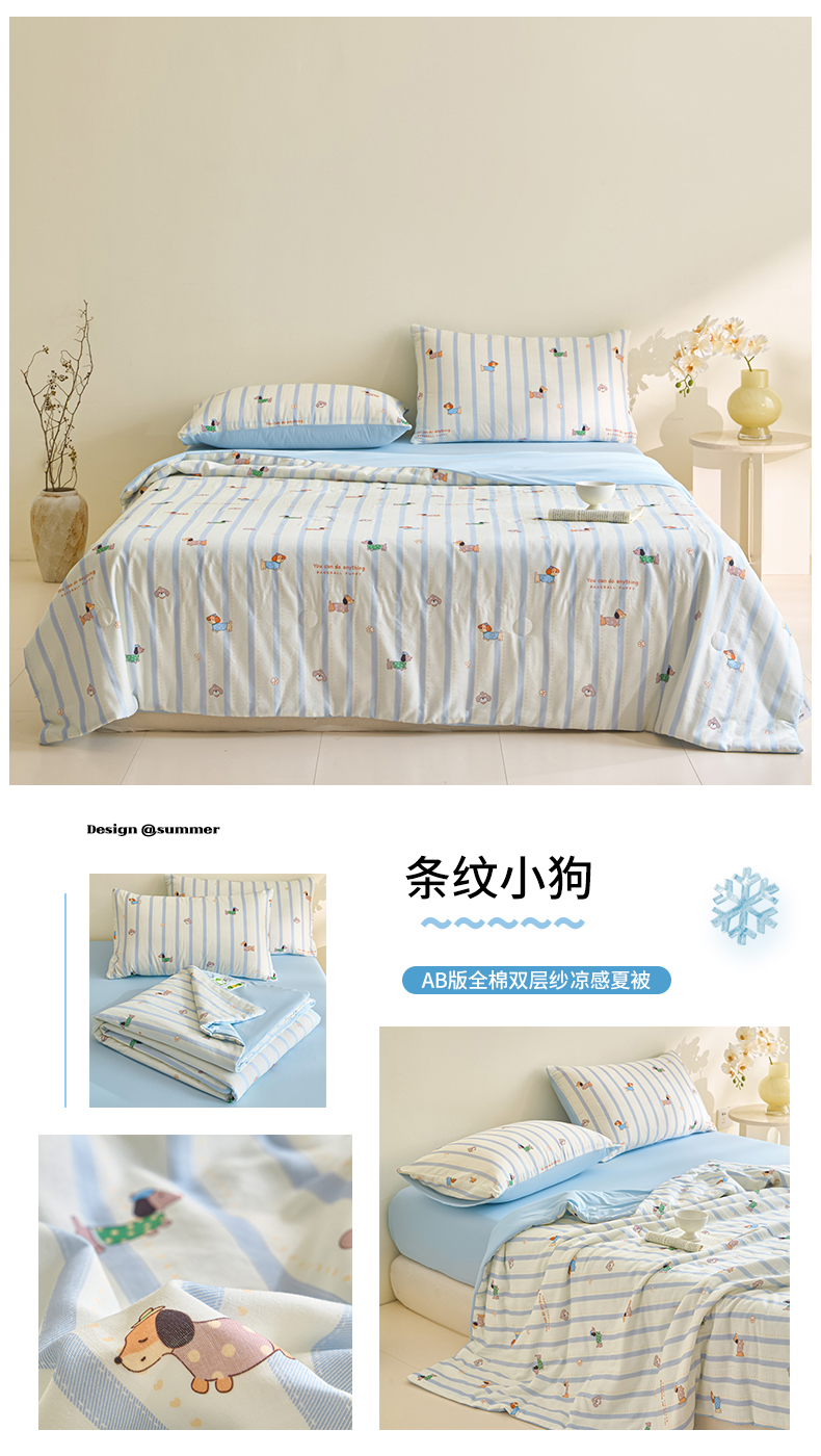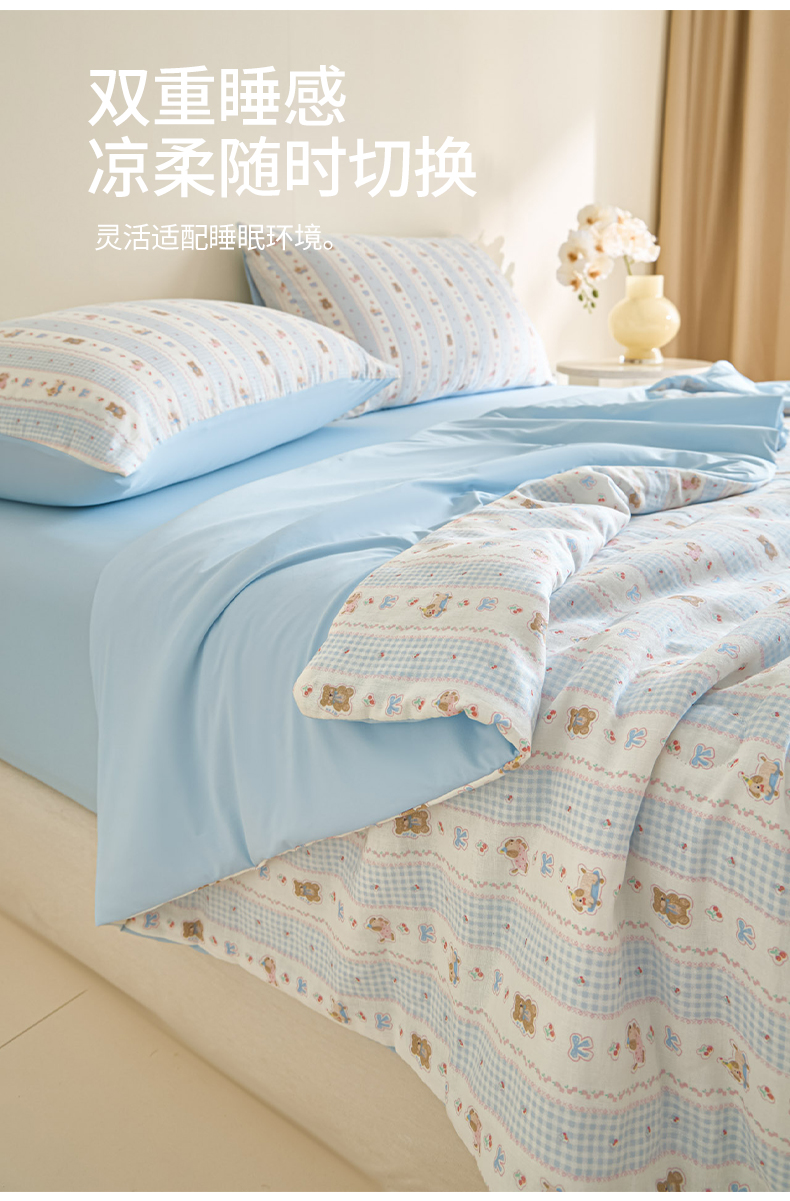 (总)宜代光年 2026春夏新款全棉双层纱凉感夏被夏凉被空调被,海盐小熊,花园小兔,奶杏格调,晴空小兔,森系小熊-粉,森系小熊-绿,甜梦凯蒂,条纹小狗,樱桃粉象,紫雾蔷薇