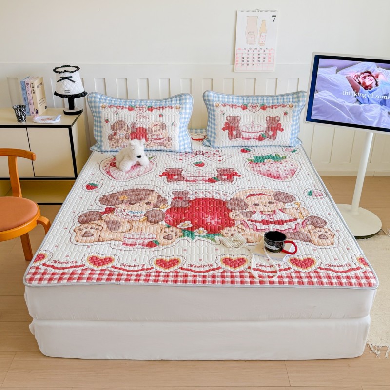 (总)顾里家纺 2026新款Pe凉感仿冰藤软席凉席三件套,滑板腊肠狗,苹果木马,苹果趴熊,甜圈小猫,香蕉熊,组合图仅供展示