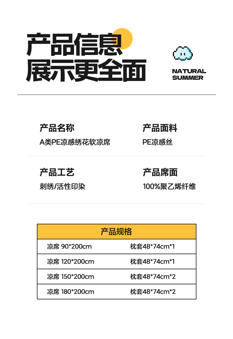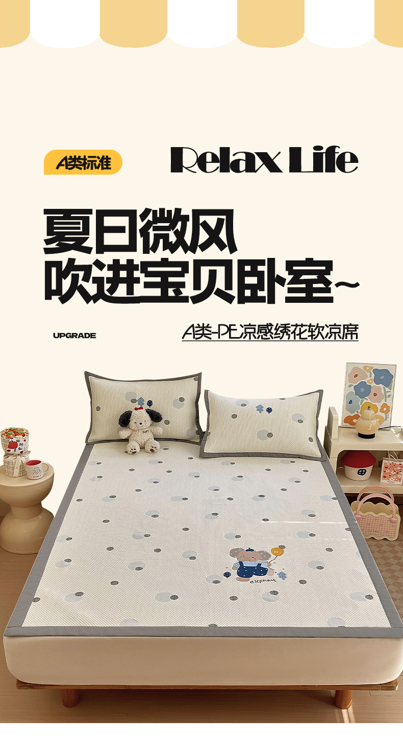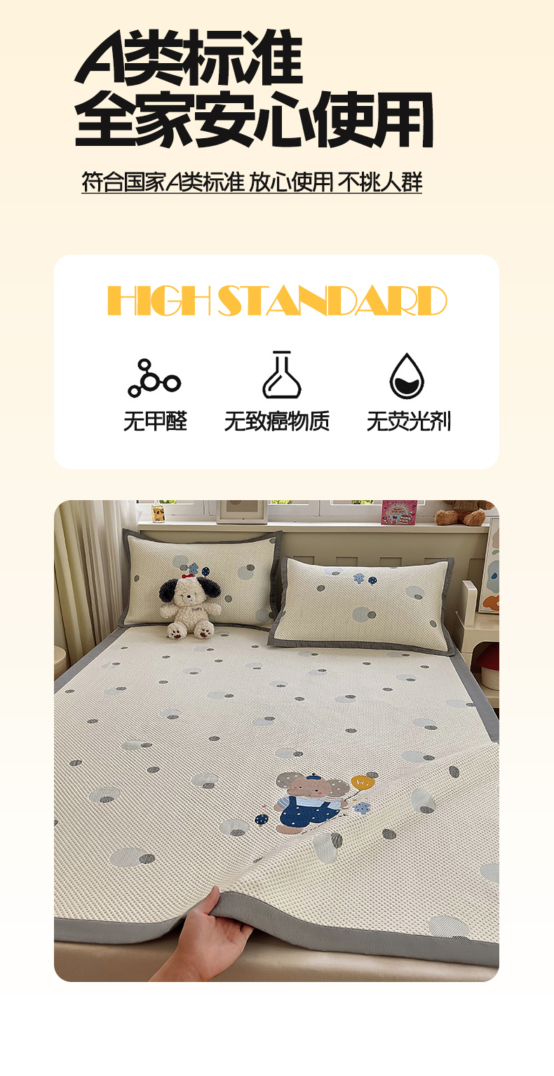 商品名称:(总)帅露家纺 2026新款A类PE中分子卡通大版绣花软凉席席子