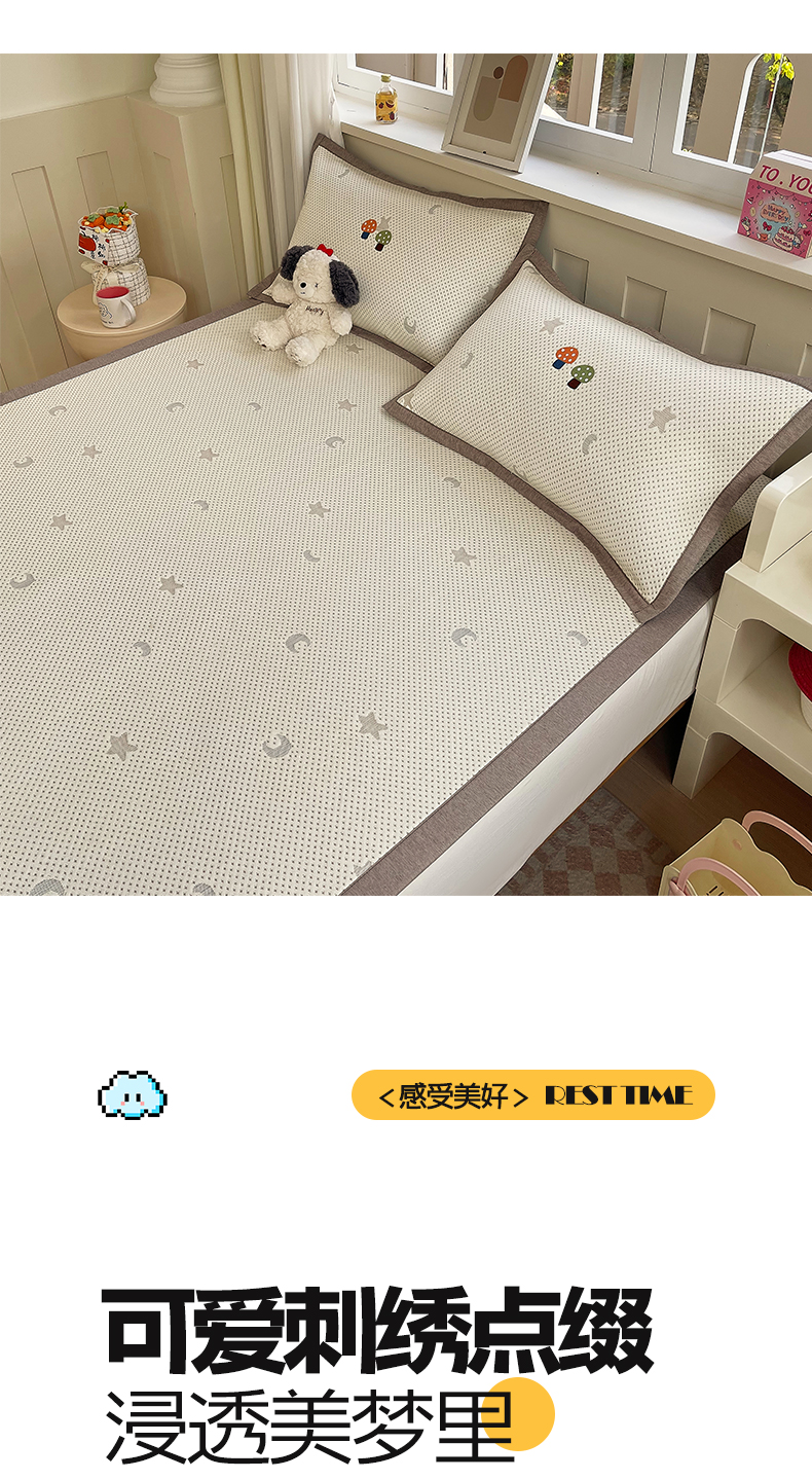 帅露家纺 2026新款A类PE中分子卡通大版绣花软凉席席子 平铺款-星月织梦